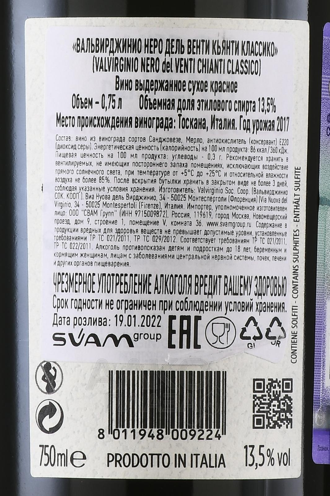 Valvirginio Nero dei Venti Chianti Classico - вино Вальвирджинио Неро Дель Венти Кьянти Классико 0.75 л красное сухое