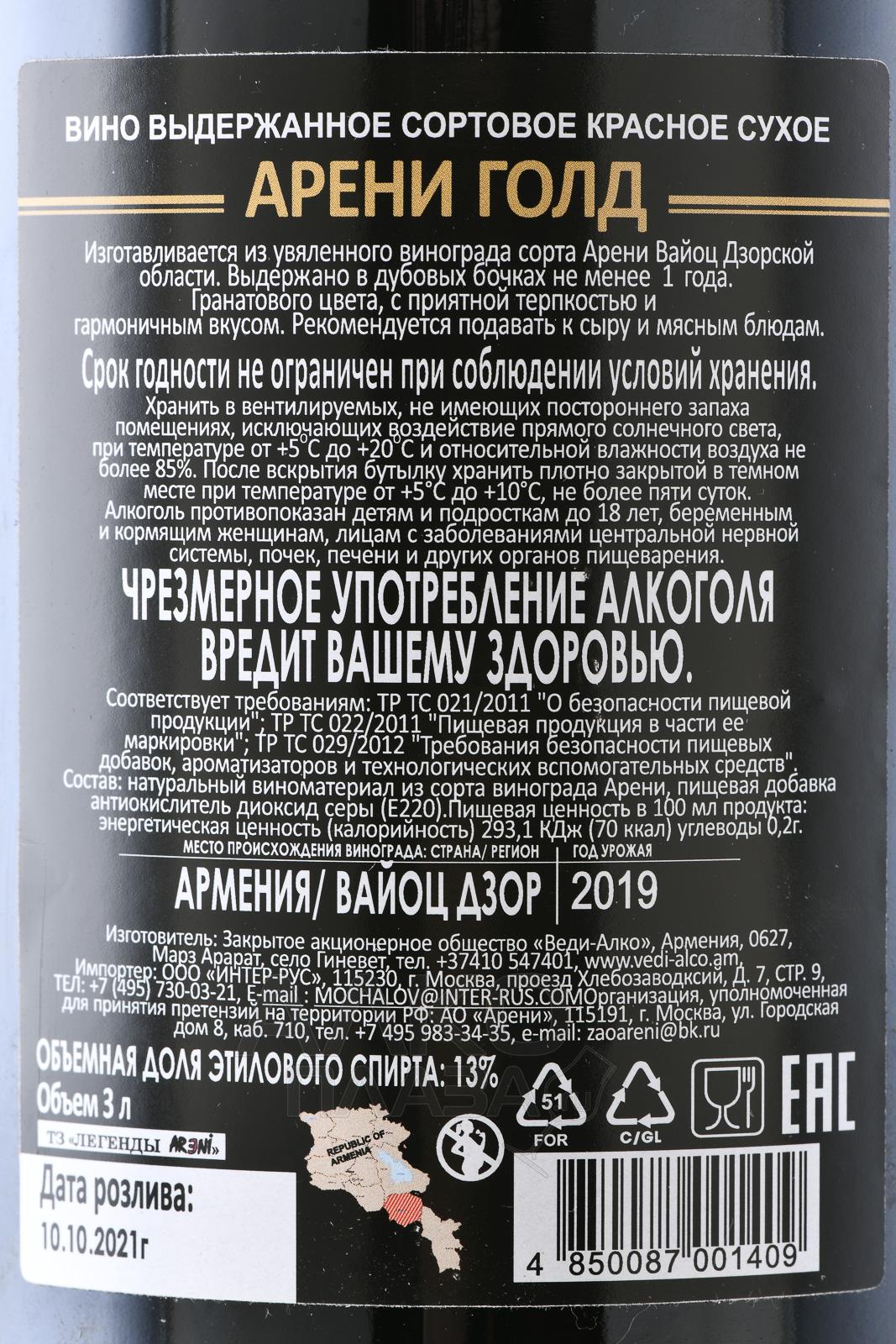 Vedi Alco Areni Gold - вино Веди Алко Арени Голд 3 л в п/у красное сухое