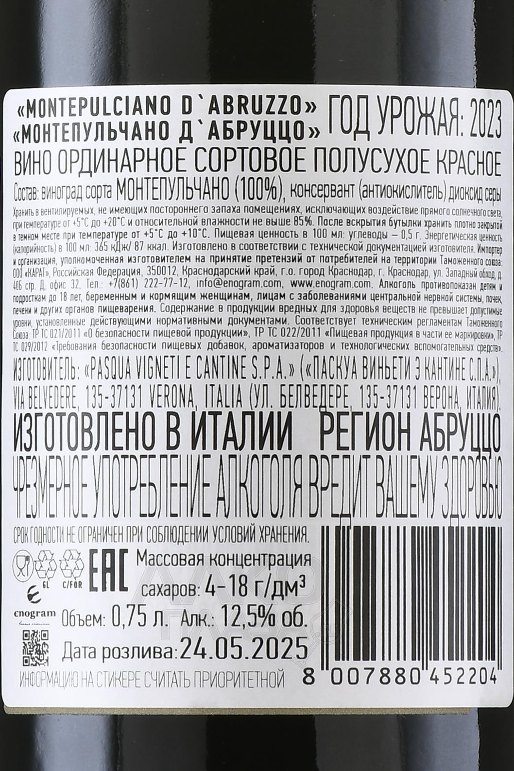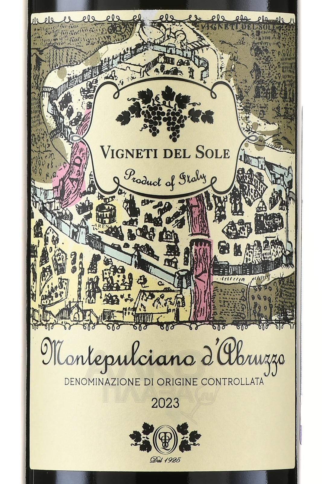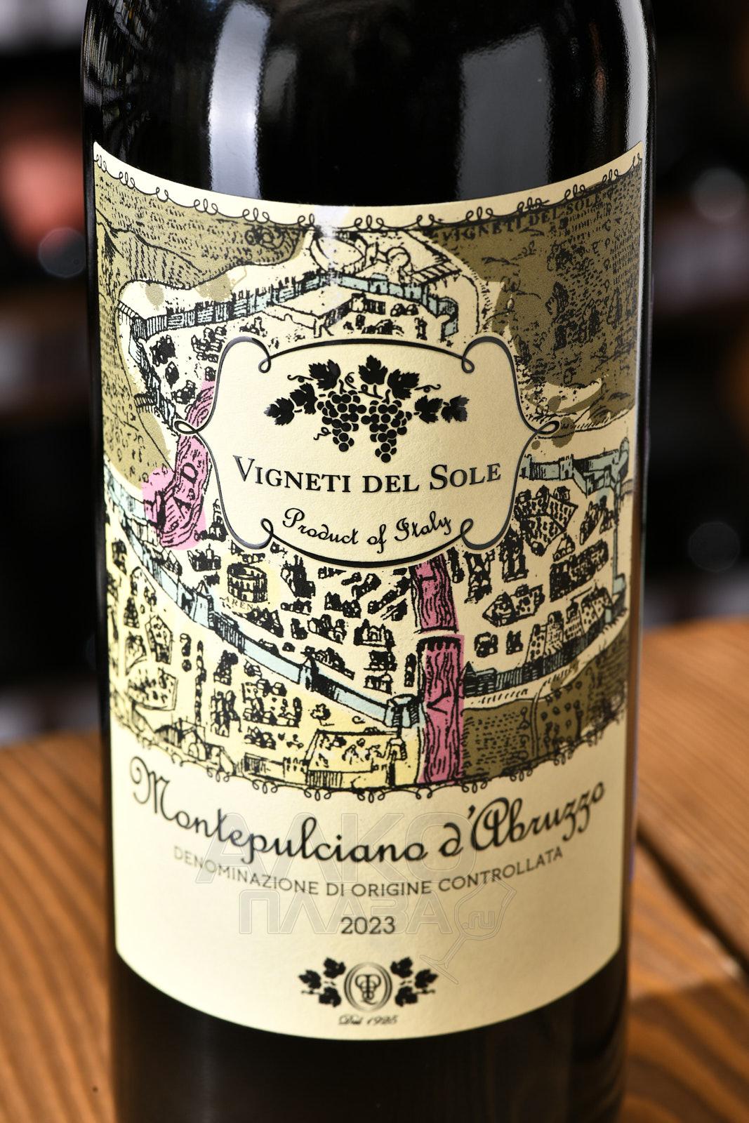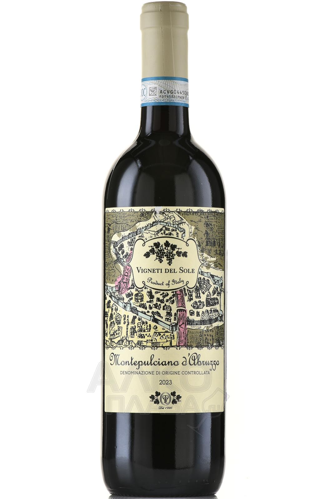 Красное полусухое вино Vigneti del Sole Montepulciano d`Abruzzo 0,75 л производится в центральной части Италии, в регионе Абруццо, у подножия Апеннин и вблизи Адриатического побережья. Виноградники располагаются на холмистых участках на высотах 200–400 метров над уровнем моря. Терруар сочетает глинисто-известняковые и аллювиальные почвы с хорошим дренажем. Континентальный климат с заметным морским влиянием, выраженными суточными перепадами температур и продолжительным периодом созревания способствует формированию насыщенного вкуса и сохранению кислотности. Сбор урожая проводится при полной фенольной зрелости. Ферментация проходит в стальных ёмкостях с контролем температуры.