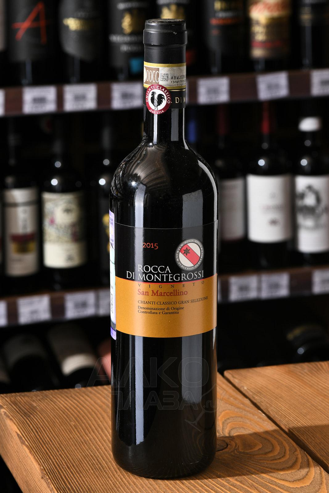 Красное сухое вино Vigneto San Marcellino Chianti Classico DOCG Gran Selezione 2015 г. 0,75 л – вариация из высшей категории качества именитого тосканского спиртного. Урожаи для винификации собрали в один год с виноградника Сан-Марчеллино, расположенного неподалеку от одноименной церкви. На площади 8 га растут в основном лозы флагманской сорта Тосканы – Санджовезе, а разбавляют их небольшие посадки старинного местного автохтона Пуньителло, который включается в купаж с 2006 года. После алкогольной и малолактической ферментации напиток разливают в бочки из французского дуба и оставляют созревать на 25 месяцев. Бленд выпущен тиражом около 18000 бутылок.