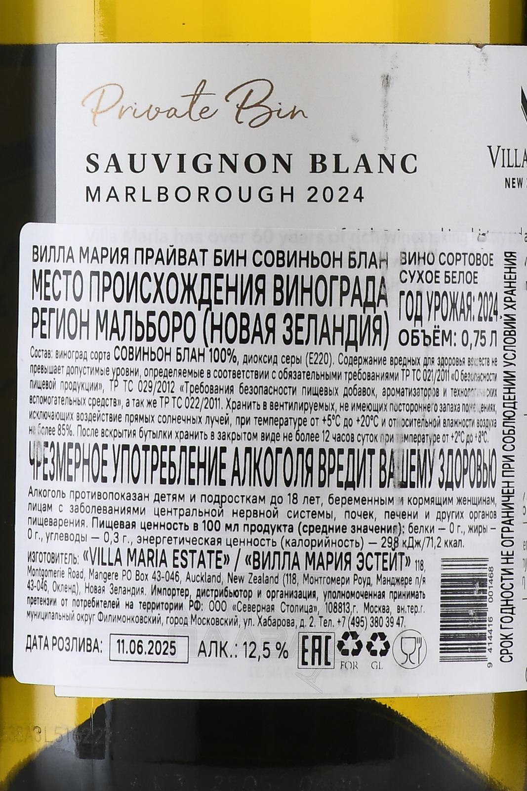 Villa Maria Private Bin Sauvignon - вино Вилла Мария Прайват Бин Совиньон 0.75 л белое сухое