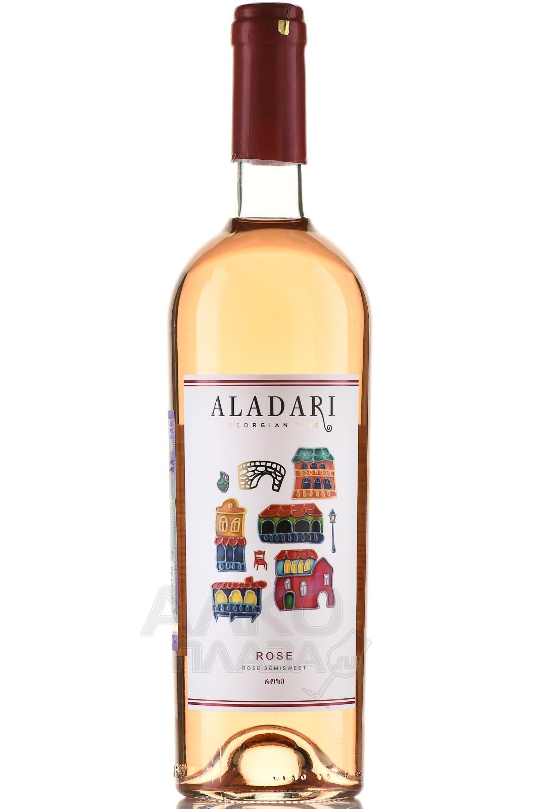 Розовое полусладкое вино Аладари ГСП Розе 0,75 л — грузинский купаж, созданный компанией Главспиртпром в винодельческом регионе Кахетия. Напиток изготавливают из плодов сортов Саперави и Ркацители, выращенных в знаменитой Алазанской долине. Виноградники расположены на склонах с глинисто-щебенистыми почвами. Терруар характеризуется теплым климатом, умеренными дождями и значительными перепадами дневных и ночных температур. Особенность технологии — кратковременная мацерация на кожице винограда в течение 6–8 часов при низких температурах (4–8 °С). Брожение останавливается при достижении уровня сахара около 30–40 г/л, что формирует лёгкую сладость и фруктовые мотивы.