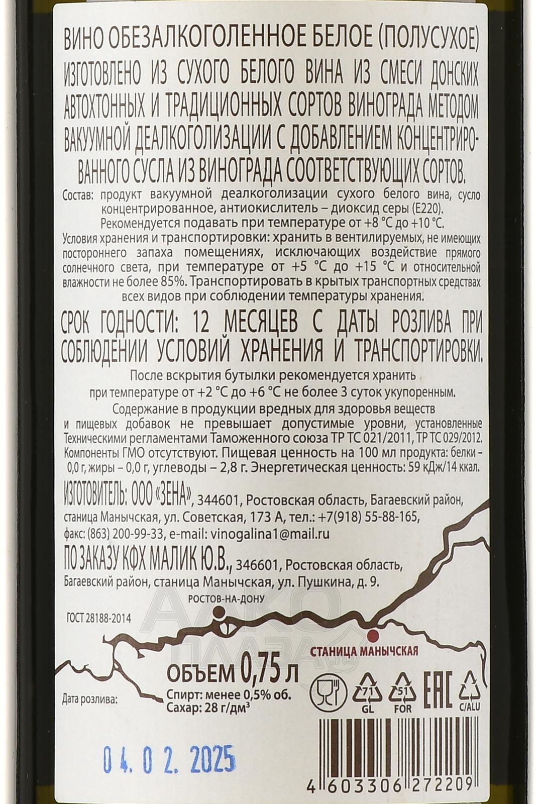 Вино безалкогольное Арпачин 0.75 л белое полусухое