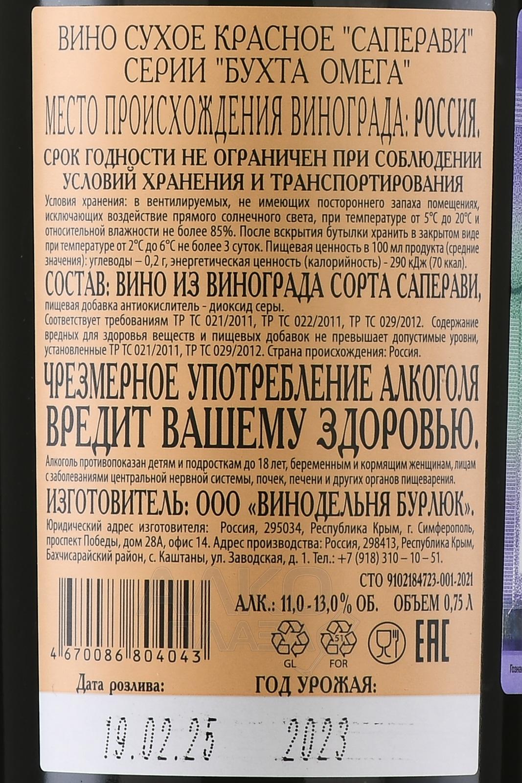 Красное сухое вино Бухта Омега Саперави Валерий Захарьин 0,75 л создано в авторском стиле, сочетающем традиции виноделия и современный подход. Виноградники расположены в уникальном терруаре с морским климатом и минеральными почвами, что придает ягодам насыщенность и свежесть. Урожай собирается вручную в период полной зрелости. Ферментация проходит в стальных емкостях при контролируемой температуре для сохранения сортовых ароматов. После этого вино выдерживается в дубовых бочках, что обогащает вкус и делает его более гармоничным. Автор проекта Валерий Захарьин уделяет особое внимание качеству, поэтому напиток отмечен положительными отзывами и занимает достойное место в коллекционной линейке. Уникальность заключается в сочетании сортового характера Саперави и яркой региональной идентичности, которая подчеркивает происхождение вина.