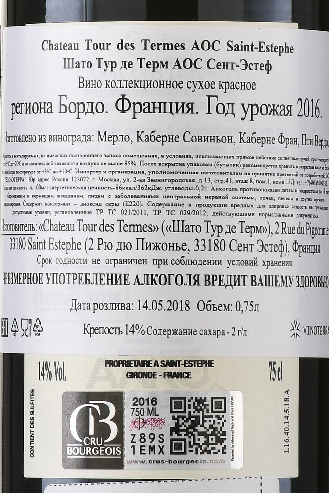 Chateau Tour des Termes L`Heritier de Tour des Termes Saint-Estephe AOC - вино Л’Эритье де Тур де Терм Сент-Эстеф 0.75 л красное сухое