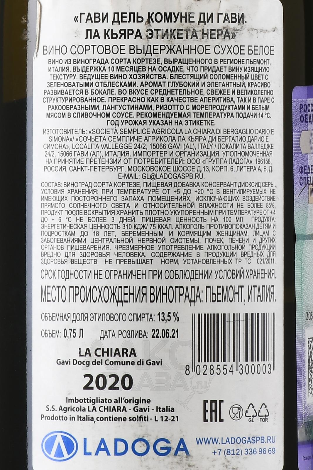 La Chiara Gavi del Comune di Gavi Etichetta Nera - вино Ла Кьяра Гави дель Комуне ди Гави Этикета Нера 0.75 л белое сухое