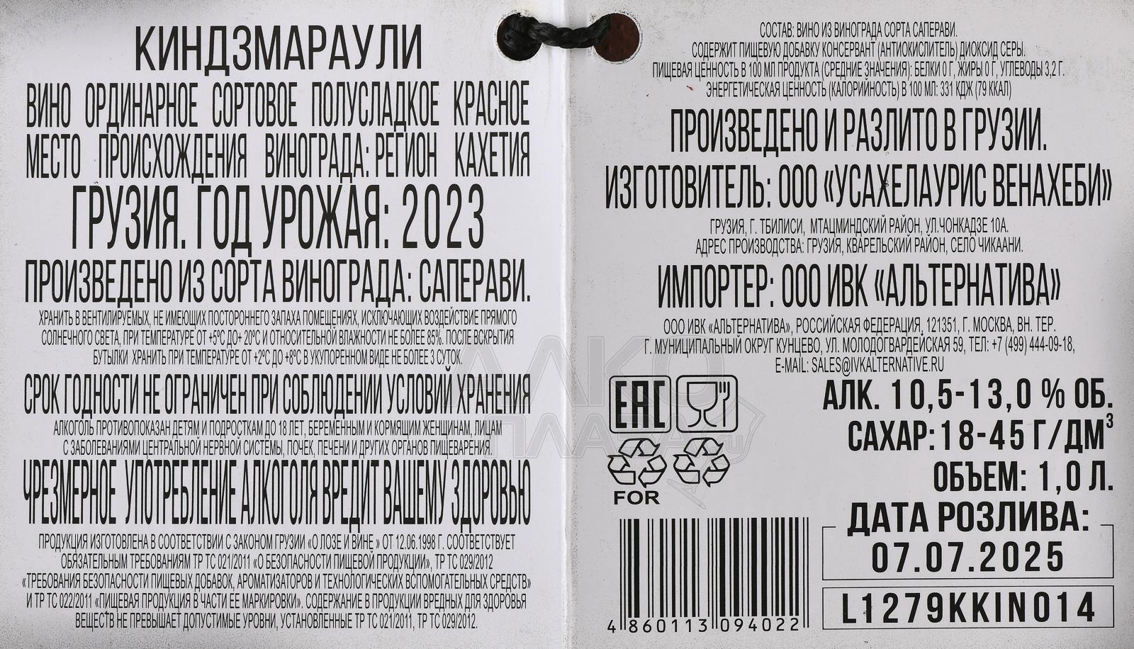 Вино Джорджиа Кантри Вайнс Киндзмараули 1 л красное полусладкое в фигурном керамическом кувшине — напиток, созданный в сердце знаменитого винодельческого региона Кахетия, где виноград выращивают у подножия Кавказских гор. Напиток получают из спелых ягод, собранных вручную на солнечных склонах Алазанской долины. Сусло сбраживается по древней грузинской технологии в глиняных кувшинах квеври, зарытых в землю, что позволяет сохранить естественную сладость и насыщенность ягод. Терруар этой местности придаёт вину характерную бархатистость и глубину вкуса, перепады дневных и ночных температур способствуют гармоничному развитию сахаров и ароматических веществ. Фигурный керамический кувшин не только украшает напиток, но и бережно сохраняет его букет, подчёркивая национальные традиции Грузии.