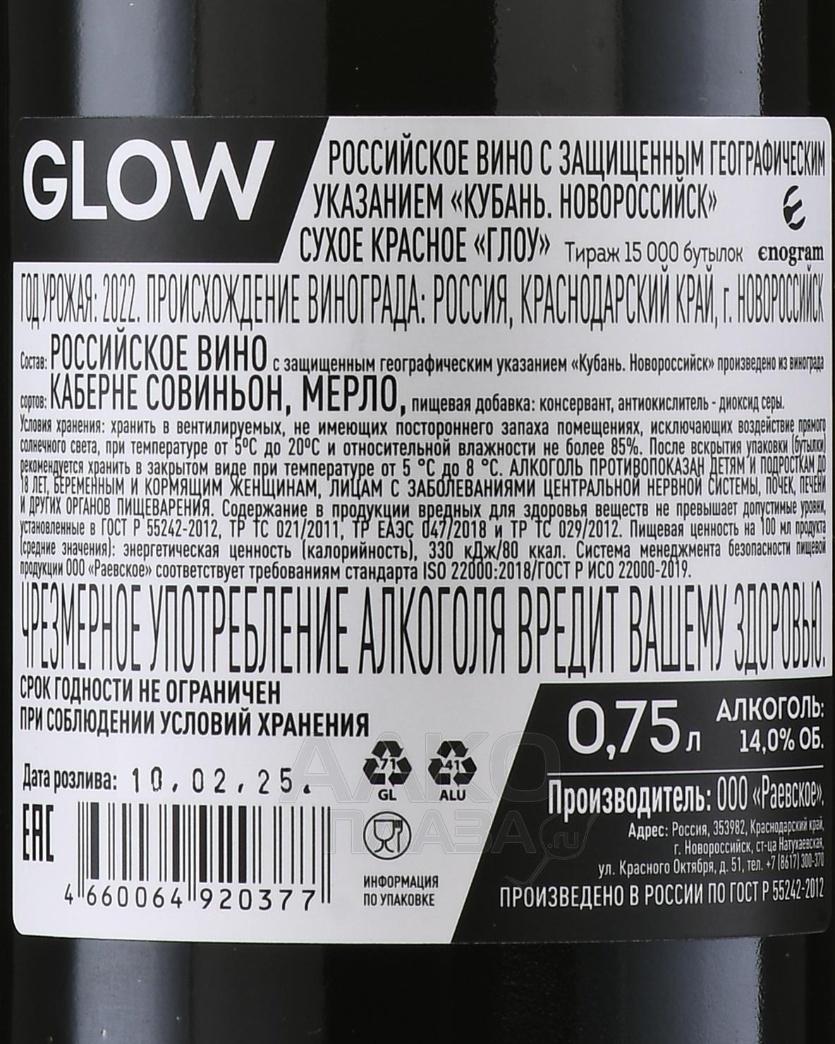 Красное сухое вино Глоу Мерло Каберне Совиньон 0,75 л создано в современном стиле с акцентом на выразительность сортов. Виноград выращен на Кубани, в терруаре с плодородными почвами и сбалансированным климатом, что позволяет сырью сохранять свежесть и насыщенность. Урожай собирается выборочно в момент оптимальной зрелости. Ферментация проходит при контролируемой температуре, что сохраняет природный аромат винограда. Выдержка - 6 месяцев в бочках из французского и американского дуба, благодаря чему вкус становится гармоничным. Вино отличается стабильным качеством и уже успело получить положительные оценки экспертов за баланс и структуру.