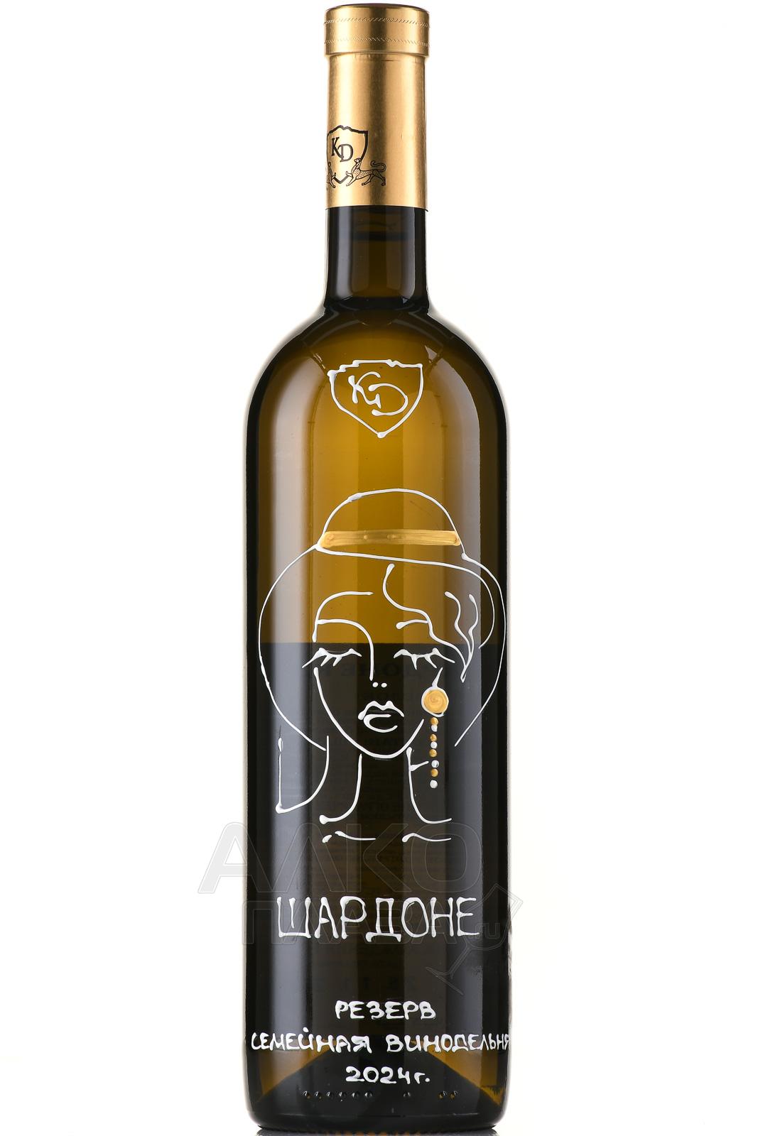 Белое сухое вино КД Шардоне Резерв 0,75 л производится в России, в южной зоне с тёплым климатом, благоприятным для белых международных сортов винограда. Ягоды собирают в стадии технологической зрелости. На семейной винодельне с видом на пики Кавказского хребта и ледник Майли плоды прессуют, а отжатый сок ферментируют при низкой температуре в стальных резервуарах. Далее следует выдержка на протяжении 12 месяцев. Напиток предлагается в расписанной вручную бутылке.