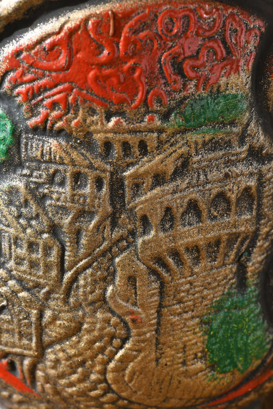 Красное полусладкое вино Киндзмараули Джорджиа Кантри Вайнс 1 л в глиняном кувшине как нельзя лучше подходит для подарка с грузинским колоритом. Знаменитый сорт из микрозоны Киндзмараули представлен в традиционном оформлении — керамическом сосуде ручной работы, навевающем ассоциации с изделиями народных мастеров. В подобные бутылки разливалось домашнее вино, ценимое за аутентичность и натуральность. Производитель ООО «Имеди-96» не отступает от традиций и применяет исконные технологии. Природно-полусладкое вино изготовлено из автохтона Саперави максимального уровня спелости (сахаристость не менее 22%) без добавления сахара. Качество продукции регулируется законом Грузии «О вине и виноделии».