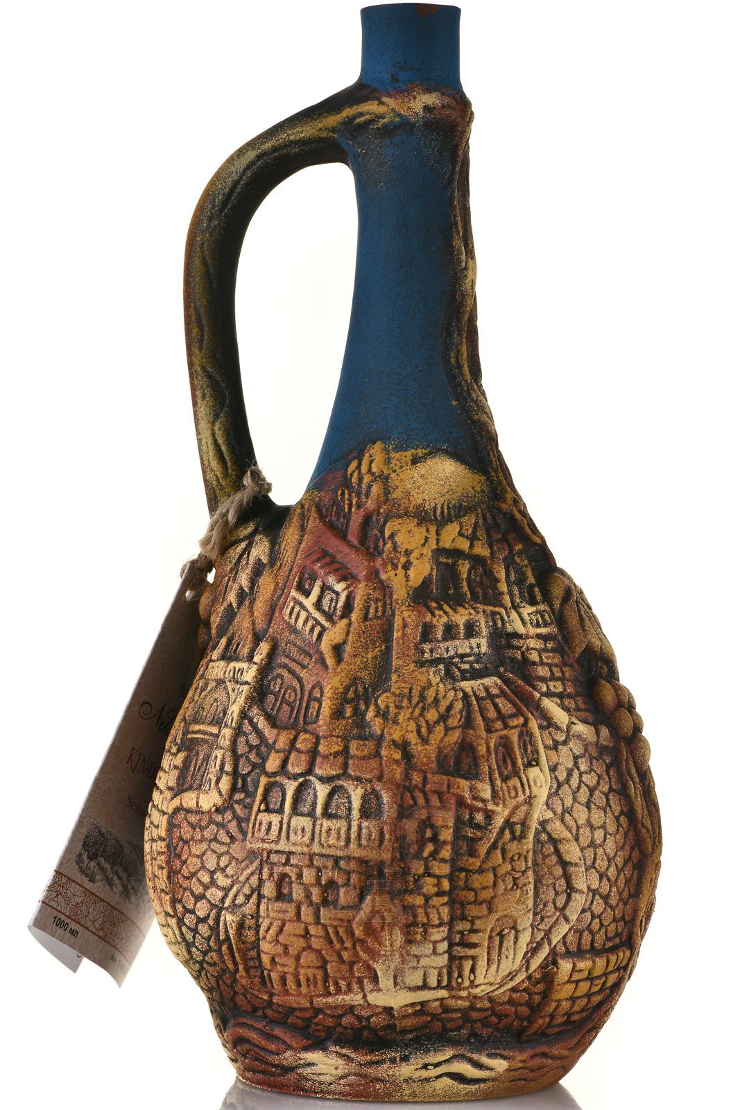 Красное полусладкое вино Киндзмараули Никалас Вайн кувшин 1 л привлекает внимание необычным оформлением, которое подчеркивает традиционный, аутентичный стиль напитка. Тара, которую он разлит, напоминает изделие народных мастеров Грузии. Расписной глиняный кувшин сделан вручную, по традиционной гончарной технологии, которая зародилась тысячи лет назад. Давние традиции лежат и в основе производства природно-полусладкого вина Киндзмараули, которое изготавливается из автохтона Саперави только в одном грузинском терруаре. Напиток с неповторимым насыщенным вкусоароматом в бутылке-кувшине с необычным дизайном станет прекрасным подарком для любого ценителя.