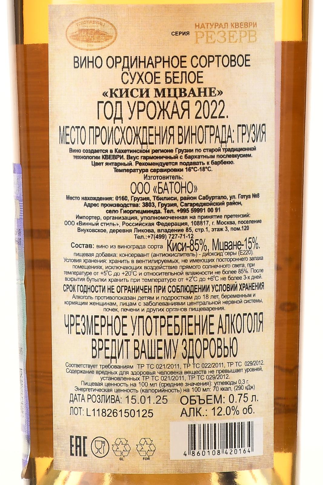 Tchotiashvili Kisi Mtsvane Qvevri - вино Киси Мцване Чотиашвили Квеври 0.75 л белое сухое оранжевое