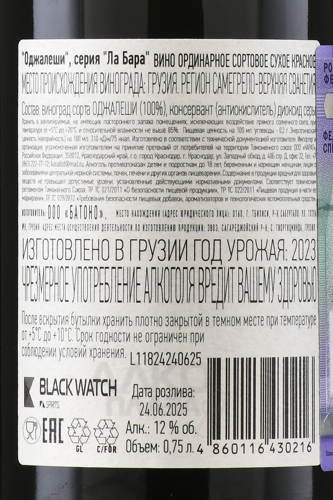 Вино Ла Бара Оджалеши 0.75 л красное сухое