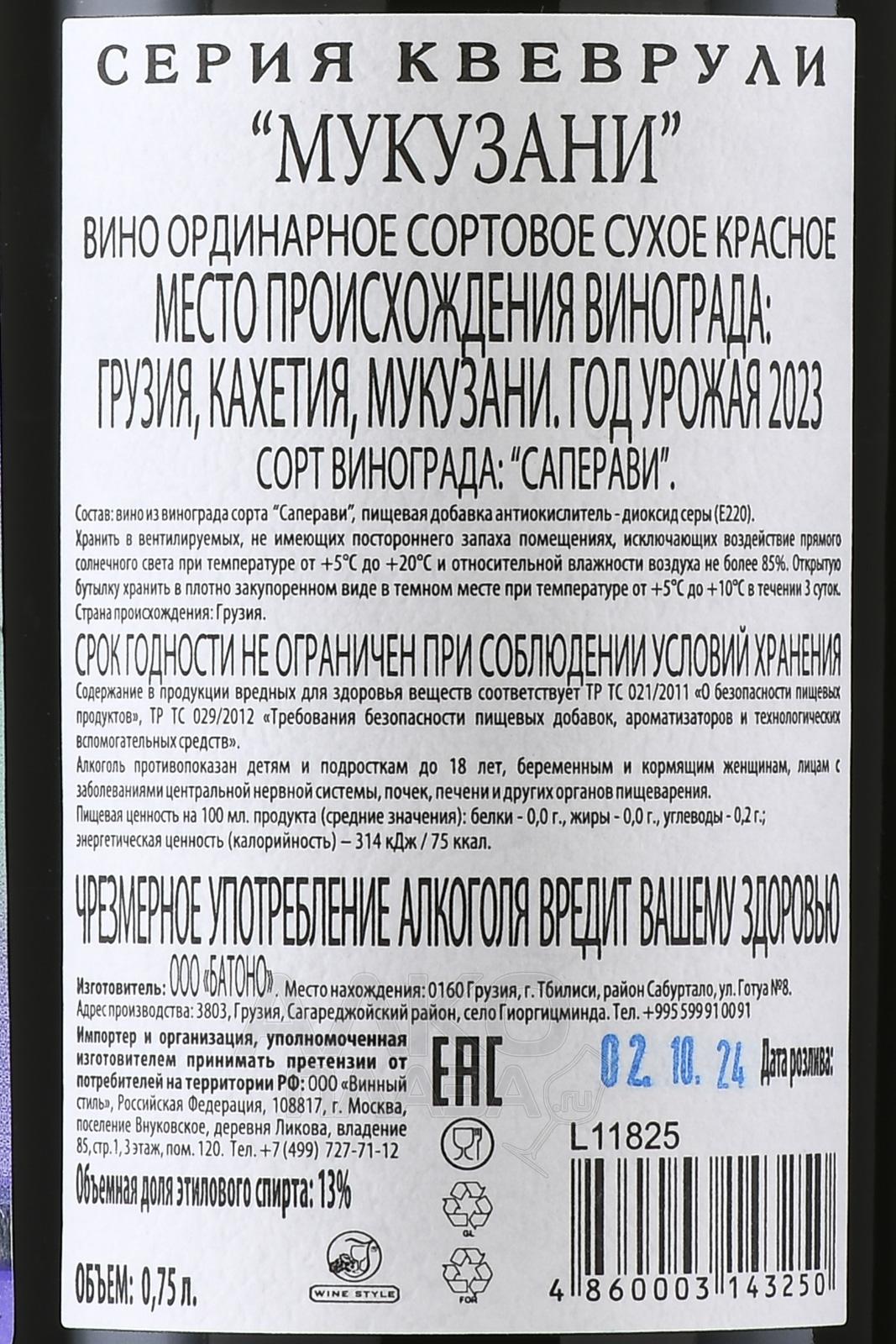 Вино Мукузани серия Квеврули 0.75 л красное сухое
