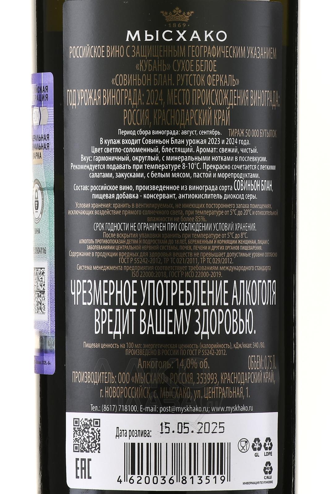 Вино Мысхако Рутсток Феркаль 0.75 л белое сухое