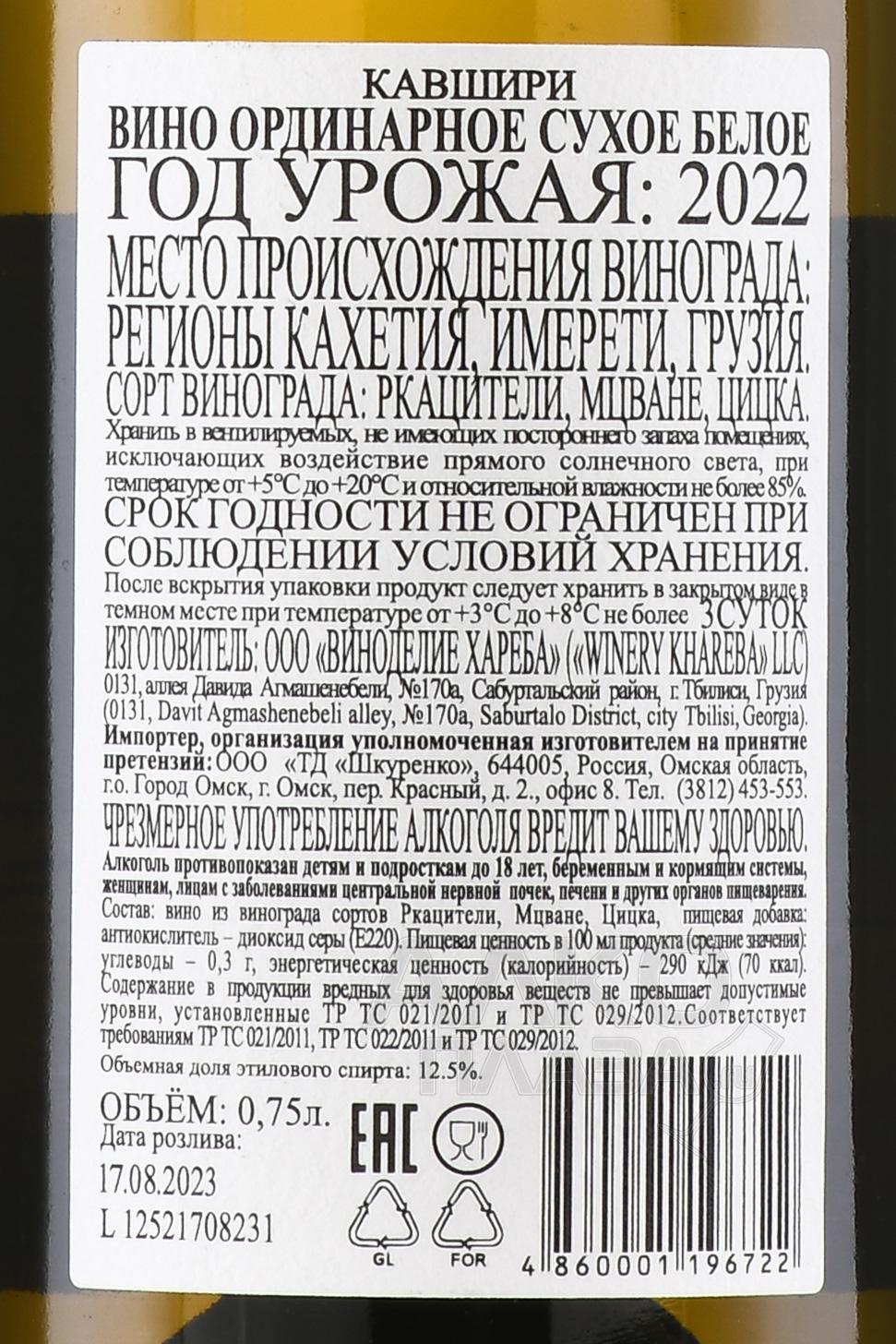 Вино ординарное Кавшири 0.75 л белое сухое рождается в долинах восточной Грузии, где умеренно влажный климат сочетается с богатыми минералами почвами, придающими ягодам выраженные терруарные характеристики. Технология его производства основана на бережном отжиме сока и ферментации при низких температурах, что сохраняет естественную свежесть и тонкость ароматов сорта. Особенностью изготовления является минимальное вмешательство винодела в процесс брожения, что позволяет максимально раскрыть потенциал местных виноградников, формируя чистый и натуральный стиль напитка.