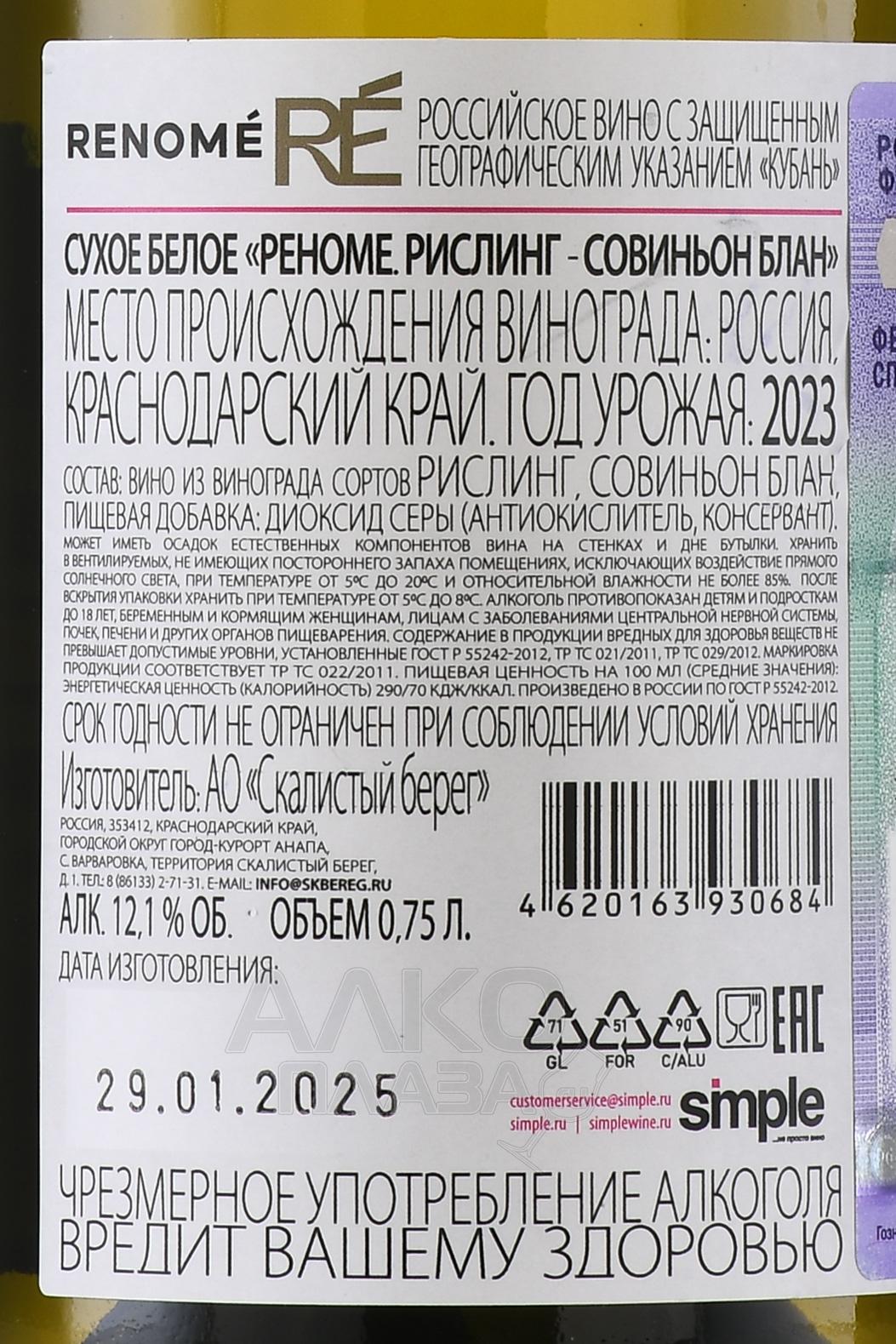 Белое сухое вино Реноме Рислинг Совиньон Блан 0,75 л — современное сочетание классики и свежего стиля. Виноград для производства собирают в южных регионах, где перепад дневных и ночных температур помогает сохранить ароматичность и яркую кислотность. Почвы — известняково-глинистые, с включениями песчаника, что придает ягодам насыщенность и минеральный акцент. Урожайность контролируется, ягоды собираются вручную, чтобы сохранить целостность гроздей. После сбора сусло проходит холодное брожение при температуре около 14–16 °C, что помогает сохранить чистый фруктовый букет.