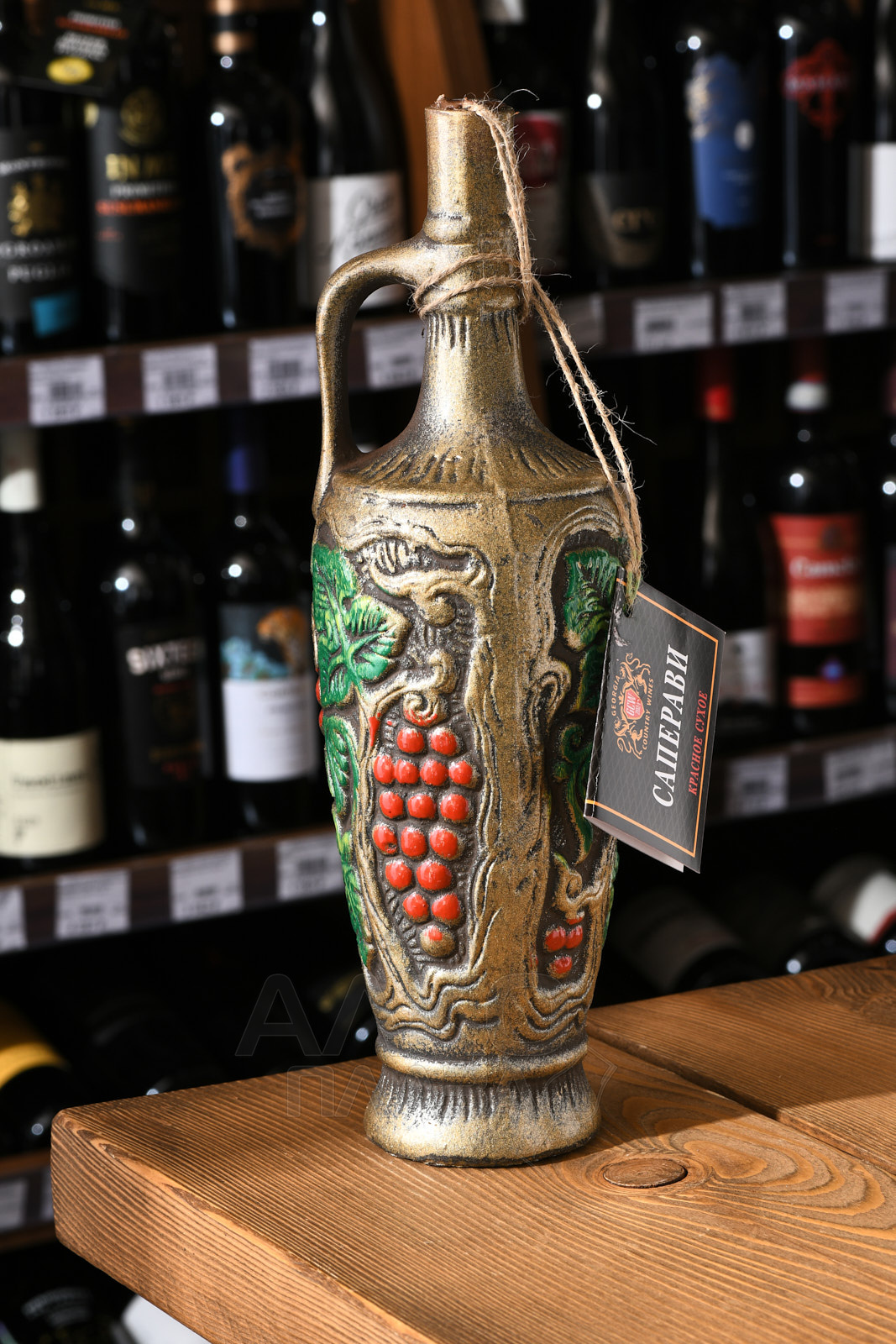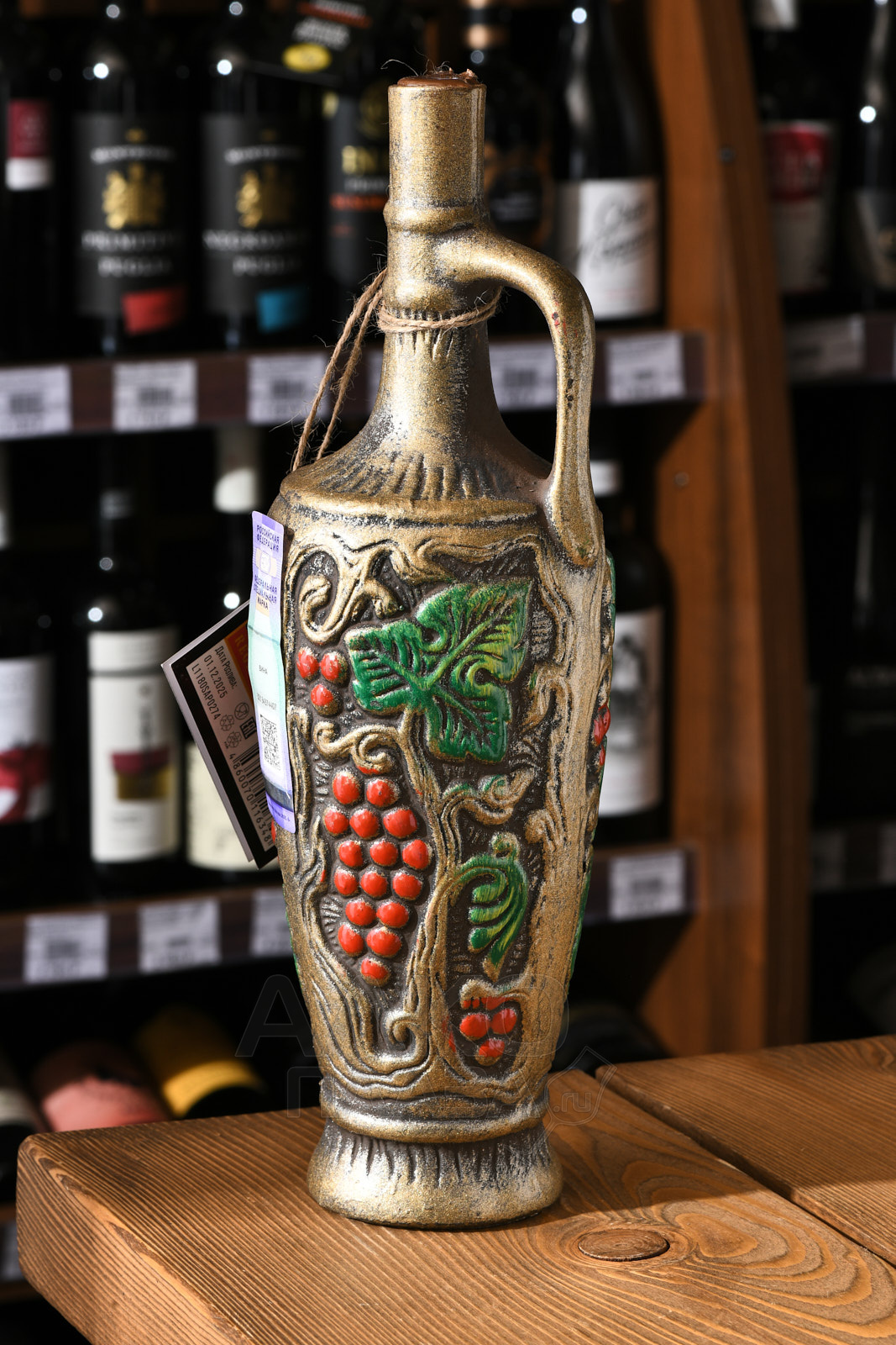 Красное сухое вино Саперави Джорджиа Кантри Вайнс 1 л в глиняном кувшине — традиционный грузинский сорт в подарочном оформлении. Керамическая бутылка ручной работы украшена лозами и виноградными гроздьями. Тара выглядит изящно и стильно, будет отлично смотреться на праздничном столе и в винном шкафу. Сухое вино сделано из автохтона Саперави, который был выращен в Кахетии в экологически чистых условиях, собран на пике спелости и переработан в соответствии с исконными технологиями винификации.