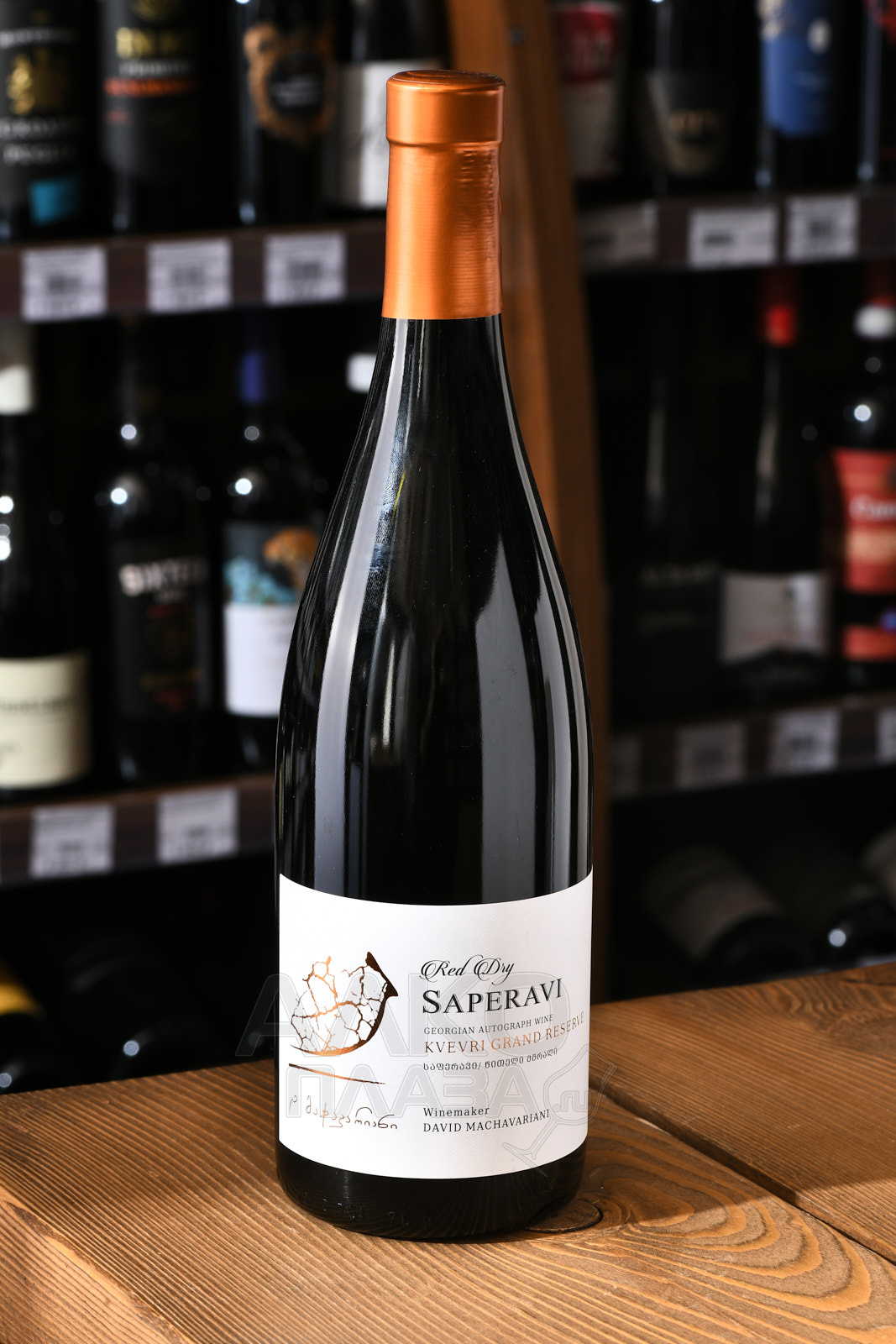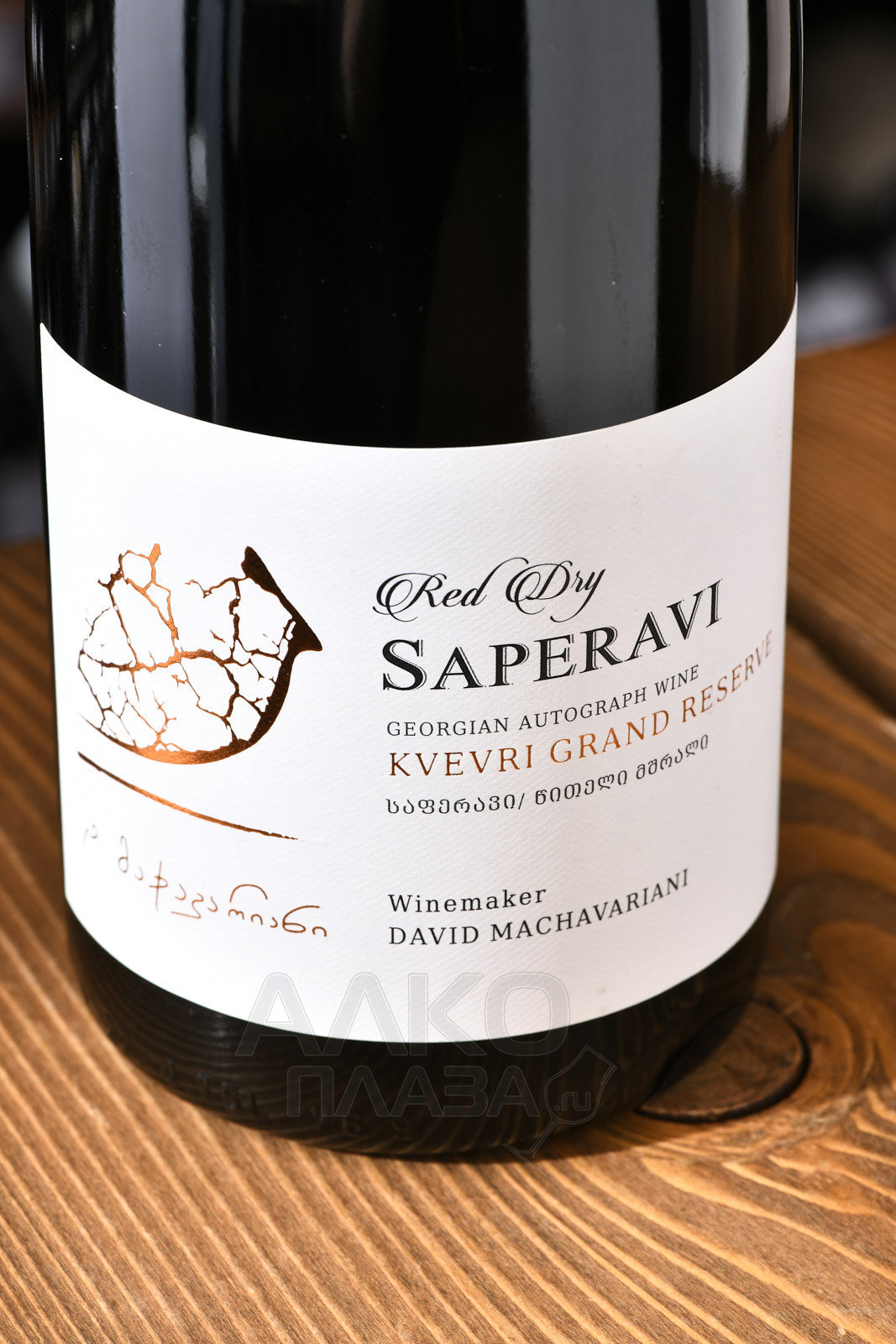 Красное сухое вино Саперави Квеври Мачавариани Вайн Резерв 2021 год 0,75 л — аутентичный грузинский напиток, созданный по древней технологии. Виноград собрали ручным методом на солнечных склонах региона Кахетия с каменистыми почвами и умеренной влажностью воздуха. После отжима сусло вместе с кожицами и гребнями отправили в огромные глиняные амфоры (квеври), зарытые в землю. В этих емкостях сусло прошло не только естественную ферментацию, но и выдержку сроком полгода.