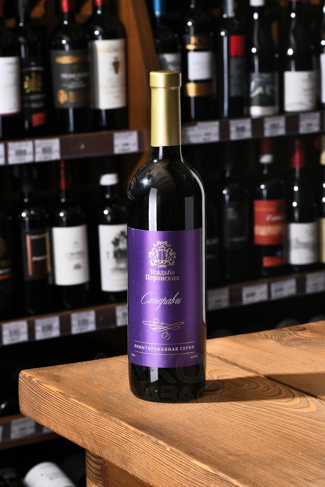 Красное сухое вино Саперави Лимитированная серия ТЗ Усадьба Перовских 2019 г. 0,75 л выпускается небольшим тиражом ввиду ограниченности сырьевой базы. Был использован урожай одного года, который для Крыма стал лучшим за 5 лет. Сорт Саперави занимает часть виноградников в Севастопольском районе. Его собирают на пике спелости, подвергают тщательной сортировке и прессованию, затем сусло сбраживают в стали при постоянном температурном режиме. Вино проходит полуторагодовую выдержку в бочках из американского дуба.