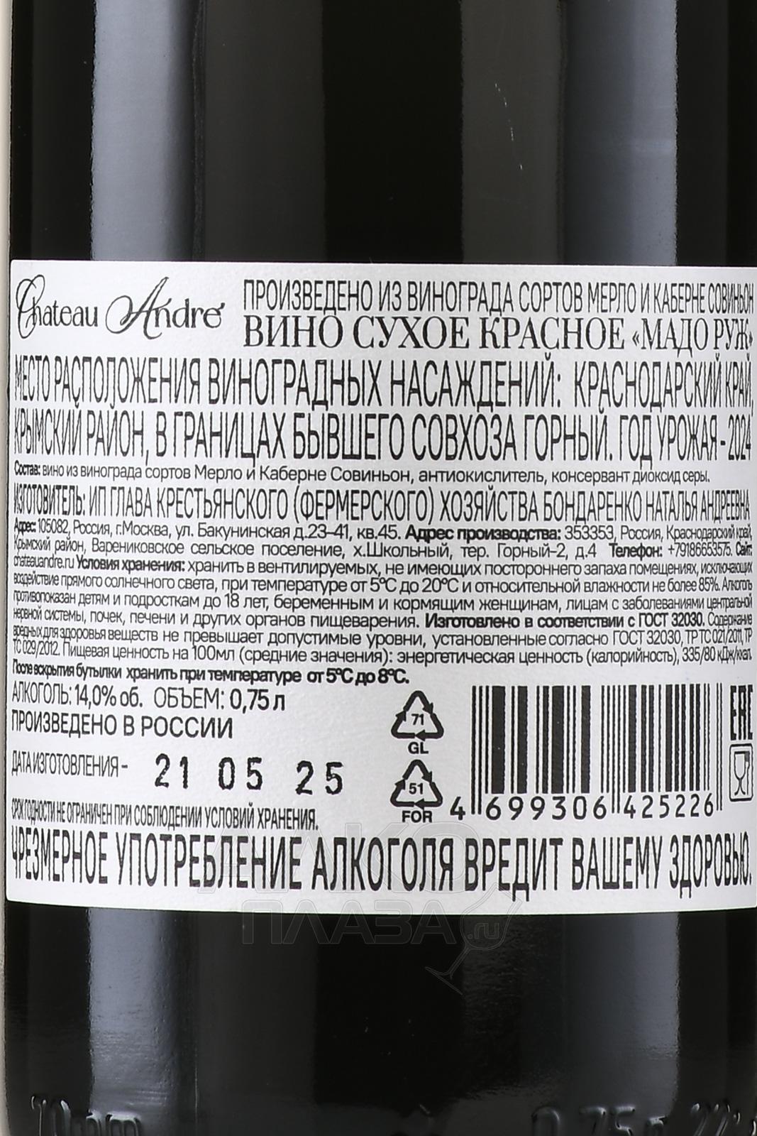 Вино Шато Андре Мадо Руж 0.75 л красное сухое
