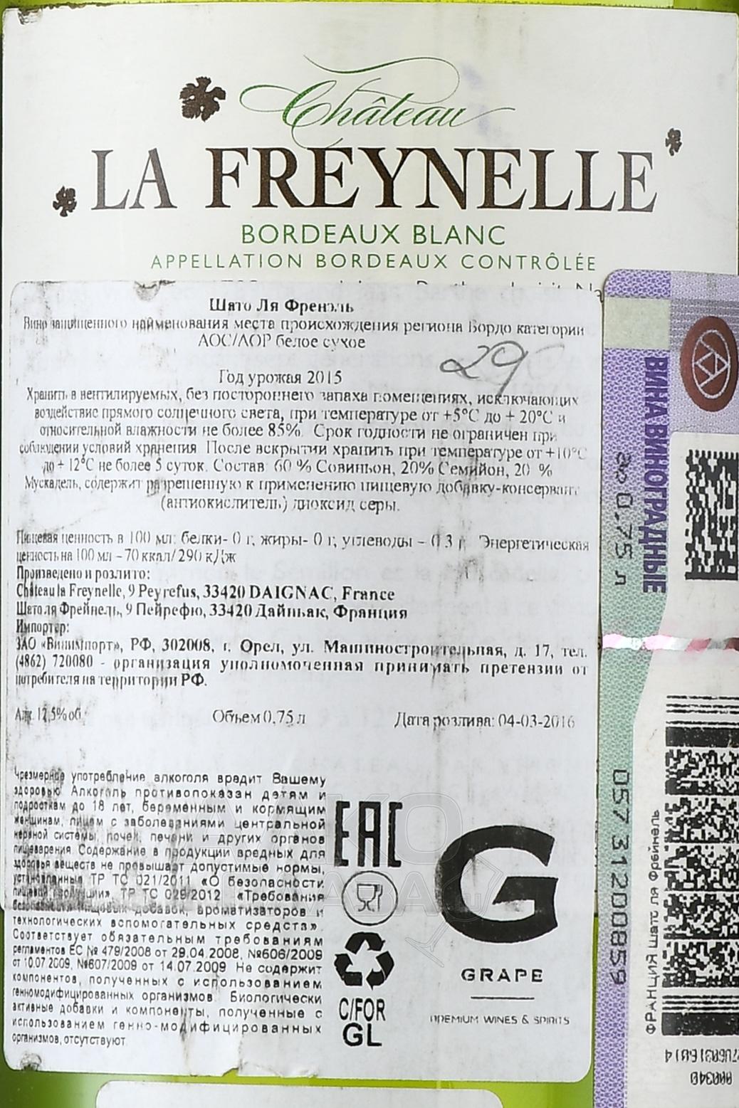 / Chateau La Freynelle Сайт alcoplaza.ru содержит информацию, не рекомендованную для лиц, которые не достигли возраста 18 лет. Чтобы осуществить вход на сайт, Вам необходимо подтвердить свой совершеннолетний возраст. Сведения, размещенные на сайте , не являются рекламой, носят исключительно информационный характер, и предназначены только для личного использования. Информация на сайте не является публичной офертой.