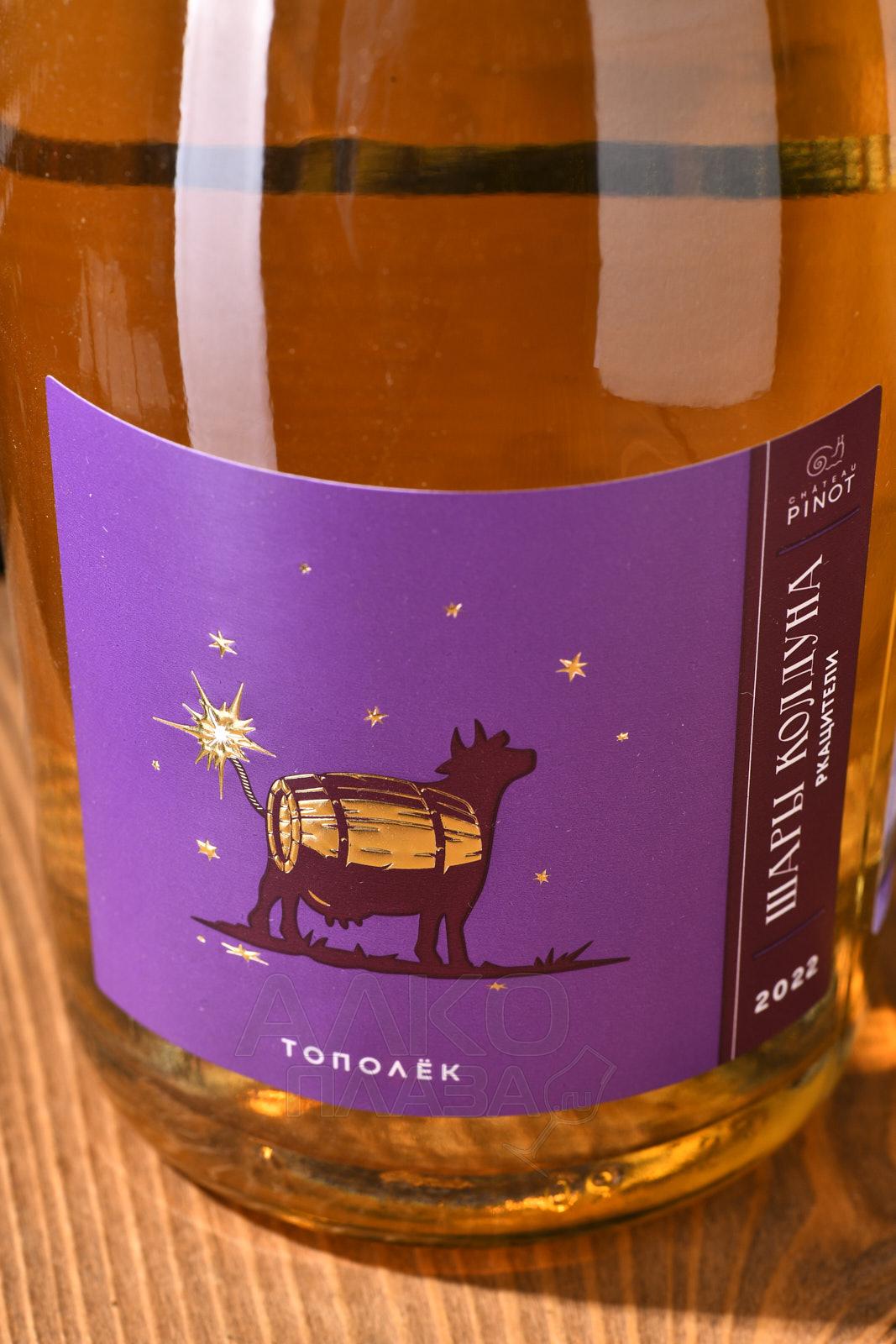 Белое сухое вино Шато Пино Шары Колдуна Тополёк 0,75 л входит в трендовую линейку молодого российского производителя из Краснодарского края. В коллекции собраны напитки с модным современным стилем и собственной изюминкой, которые как нельзя лучше подойдут для вечеринки и любого праздника. Вариация с игривым названием Тополёк создана из сорта Ркацители, который выращивается в селе Федотовка рядом с Новороссийском. Уникальный терруар находится в приморской части отрогов Навагирского хребта. Лозы растут на склонах горы Колдун на высоте 180-270 м на мергелевых и каменистых почвах в условиях мягкого климата. Сбор урожая производится на пике спелости. Сусло ферментируется вместе с мезгой в стальных емкостях с терморегуляцией, затем вино выдерживается несколько месяцев в бочках, из которых 50% дубовые, 50% акациевые.