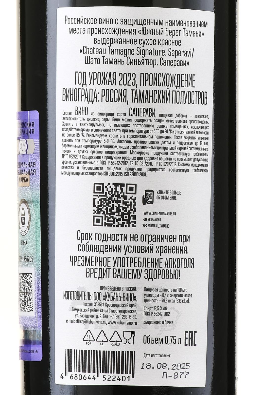 Красное сухое вино Шато Тамань Синьятюр Саперави 0,75 л создано из сорта, который традиционно известен своей мощной структурой и глубокой окраской. Для винификации берут виноград с участков на Таманском полуострове, где климат — тёплый, а морские бризы умеряют летнюю жару. Почвы здесь смешанные: песчаник, ракушечник, суглинок. Такие условия дают ягодам яркую фенольность и высокую концентрацию пигментов. Урожай собирают вручную, сортируют и ферментируют малыми объёмами при стабильной температуре. После окончания брожения напиток выдерживают в бочках из французского дуба 6–9 месяцев. Этот этап помогает округлить танины и придать насыщенность.