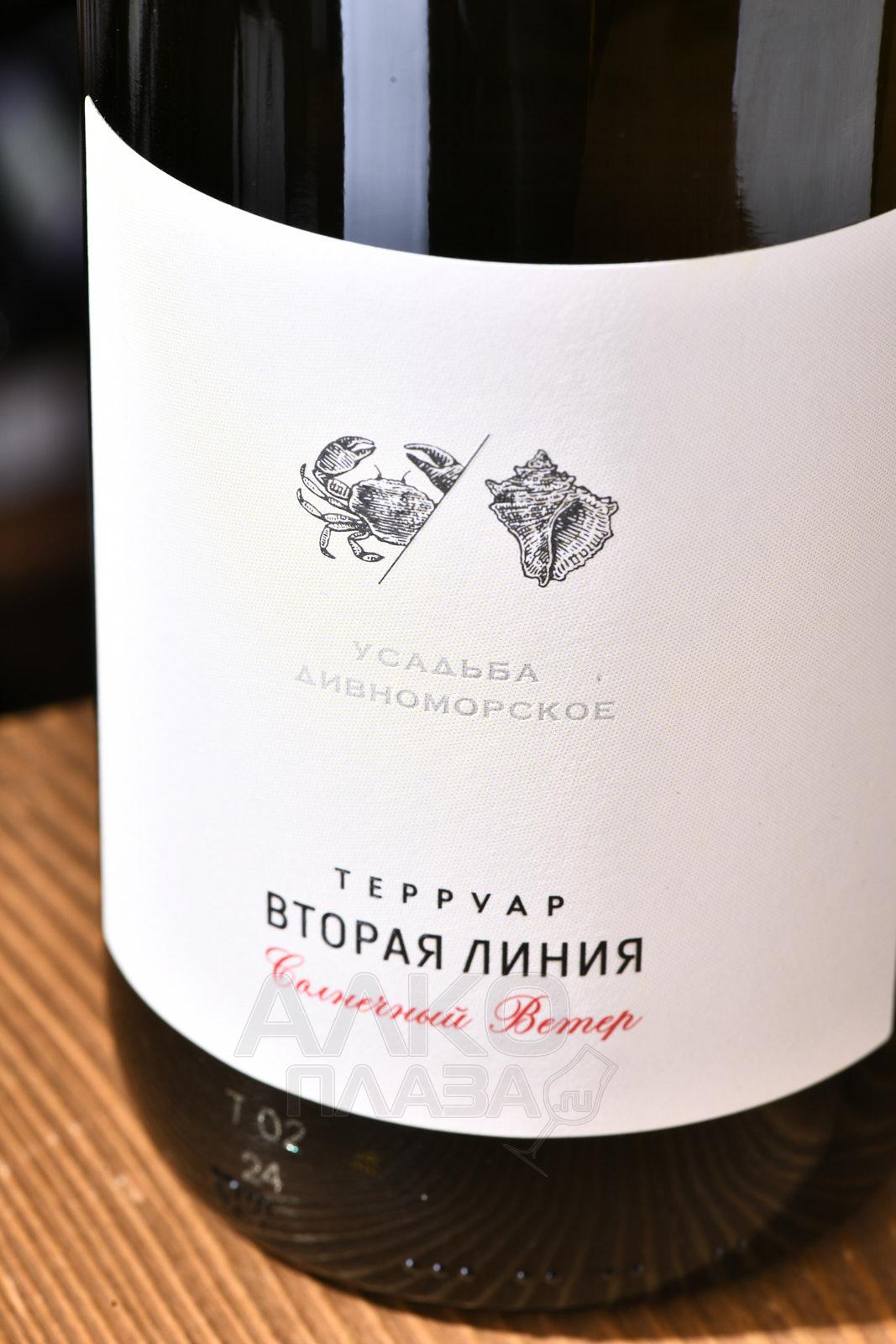 Белое сухое вино Солнечный Ветер Вторая Линия 2020 г. — отечественный винтаж с 13-градусной крепостью, созданный в г. Геленджике Краснодарского края из винограда европейских сортов, выращенного на местных угодьях. Сырье подверглось раздельному сбраживанию при термоконтроле, а выдержка прошла на дрожжевом осадке. Вино рекомендуется употребить в течение первых 3-5 лет после розлива.