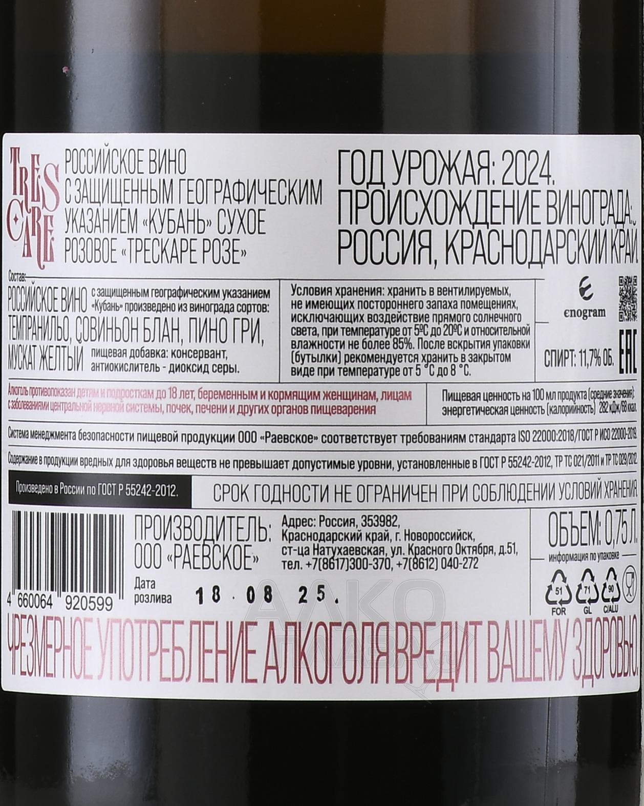 Вино Трескаре Розе 0.75 л розовое сухое