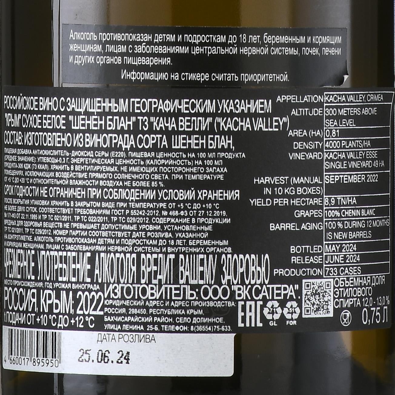 Белое сухое вино Кача Велли Шенен Блан 0,75 л — это напиток с чётким характером и свежестью. Он создан из ягод, выращенных в терруаре на высоте около 300–350 м над уровнем моря. Почвы тут преимущественно глинисто-известковые. В год сбора урожая Крымский регион пережил тёплую весну и умеренно жаркое лето с дневными температурами до +32 °C, а ночные опускались до +15 °C, что обеспечило гармонию кислотности и сахара. Урожайность составила примерно 8 т/га. Сусло ферментировалось при контролируемой температуре 16–18 °C в стальных резервуарах, без выдержки в дубе. В результате получился чистый, живой образец с выразительным профилем и лёгкой хрустящей структурой.