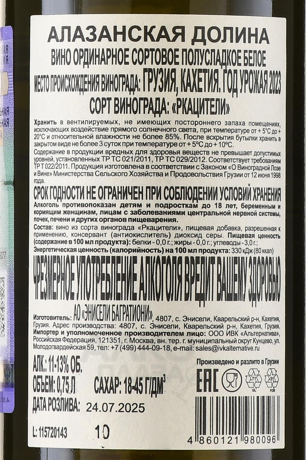 Вино Захария Джорджадзе Алазанская Долина 0.75 л белое полусладкое