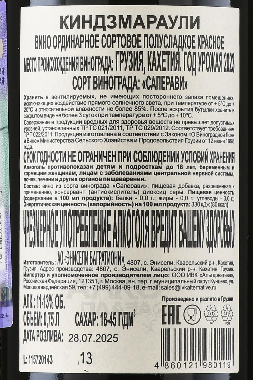 Вино Захария Джорджадзе Киндзмараули 0.75 л красное полусладкое