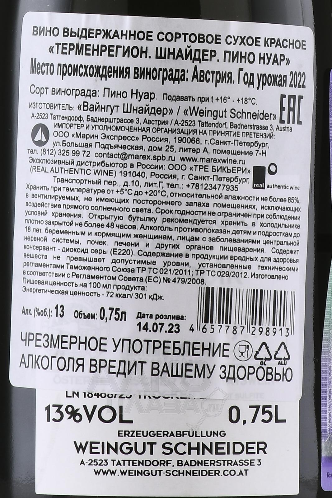 Красное сухое вино Weingut Schneider Pinot Noir 0,75 л отражает характер немецкого виноделия, где точность и внимание к деталям сочетаются с уважением к терруару. Виноградники расположены в Пфальце, одном из самых солнечных регионов Германии, в котором лозы растут на известняковых и песчаных почвах. Такое сочетание дает ягодам возможность развивать глубину вкуса и сохранять свежую кислотность. Урожай собирается вручную, обычно в начале осени, когда прохладные ночи и теплые дни обеспечивают равномерное созревание гроздей. Брожение проводится при контролируемой температуре, после чего напиток выдерживается в дубовых бочках акценты.