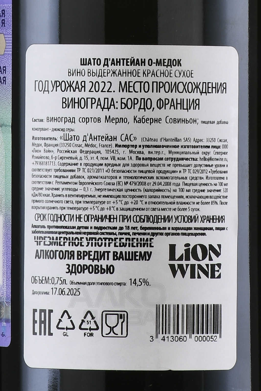 • Chateau d’Hanteillan Haut-Medoc - вино Шато д’Антейан О-Медок 0.75 л выдержанное красное сухое