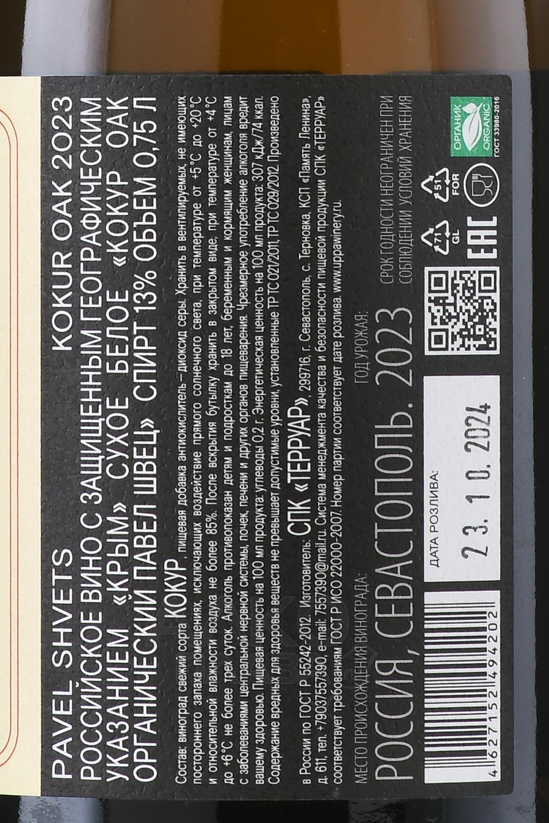 Вино Павел Швец Кокур Оак Черная Ривер Велли 0.75 л белое сухое