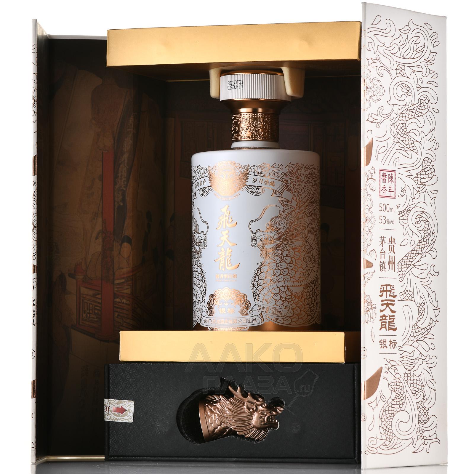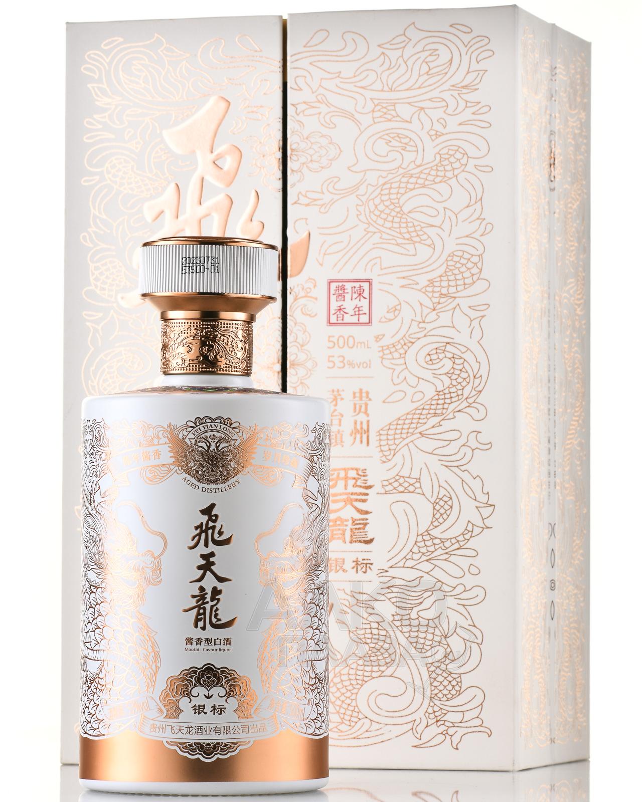 Байцзю Feitianlong Yinbiao Baijiu 0,75 л в п/у с дозатором — китайский крепкий алкогольный напиток традиционной категории, выпускаемый в увеличенном объёме и оснащённый дозатором для контролируемой подачи. В состав купажа входят дистилляты из пшеницы и сорго. Зерно сбродили с закваской цюй, которая запускает многоступенчатое твердофазное брожение. Далее последовала перегонка, формирующая характерный профиль спиртов. Выдержка в дубе не применялась — до розлива хранение проходило в стальных емкостях. Этнический дизайн с символами культуры Поднебесной превращает релиз в элегантный презент.