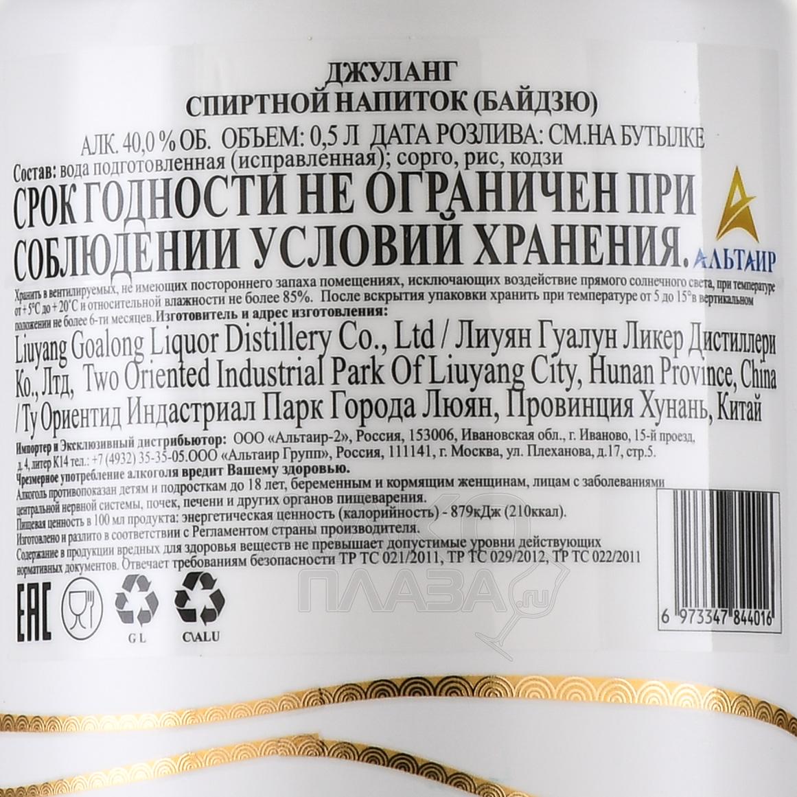 Baijiu Goalong Julang - байдзю Гоалонг Джуланг 0.5 л в п/у