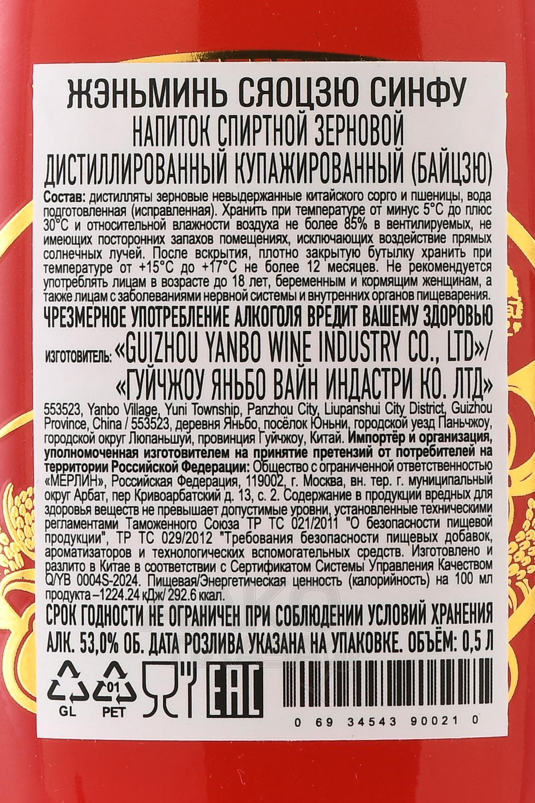 Байцзю Renmin Xiaojiu Xingfu Baijiu 0,5 л изготовлен в традиционном стиле икитайской провинции Гуйчжоу. Его основу составляет зерно пшеницы и местного сорго. Злаки в твёрдом виде сбраживают на закваске цюй и перегоняют. Бутылка в красном и золотом цветах, символизирующих для китайцев удачу и богатство, подходит на роль солидного презента.