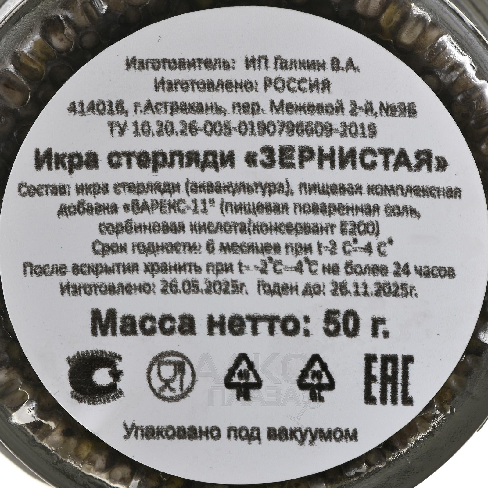 Икра стерляди Зернистая в ст/б 50 гр