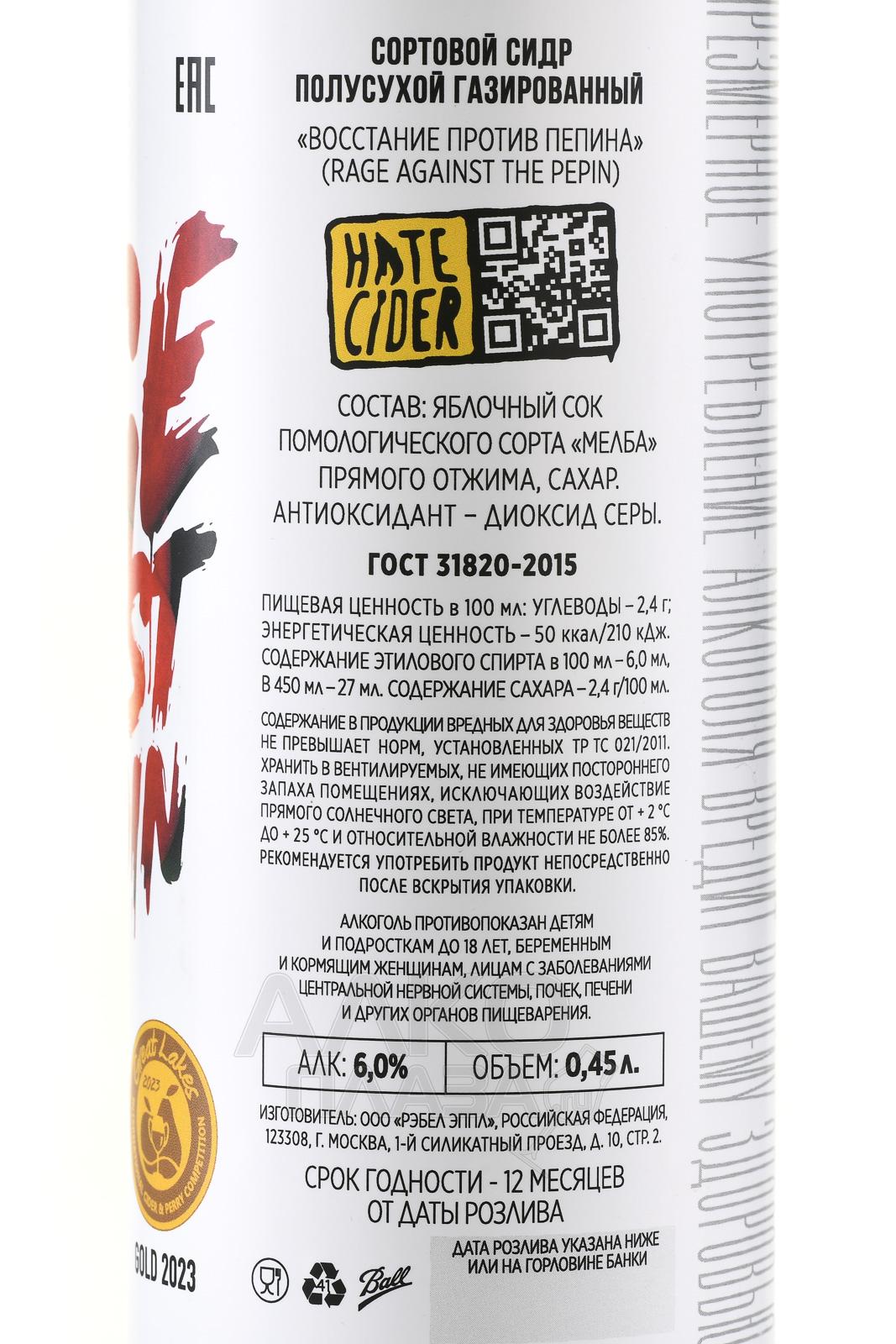 Сидр полусухой Rebel Apple Rage Against the Pepin 0,45 л в ж/б создаётся из отборных яблок, собранных в прохладных садах северных регионов, где почвы состоят из смеси суглинков, песчаных пластов и известняковых включений. Такой терруар даёт плотную кислотность и яркий сок. Компания работает с локальными сортами, которые отличаются высоким содержанием ароматических веществ и естественной свежестью. Урожай собирают при полной зрелости плодов. Яблоки мягко прессуют, сусло ферментируют при контролируемой температуре, используя чистые дрожжевые культуры. Затем сидр проходит дозревание в стальных резервуарах. Формат банки подчёркивает современный подход производителя и ориентирован на удобство подачи.