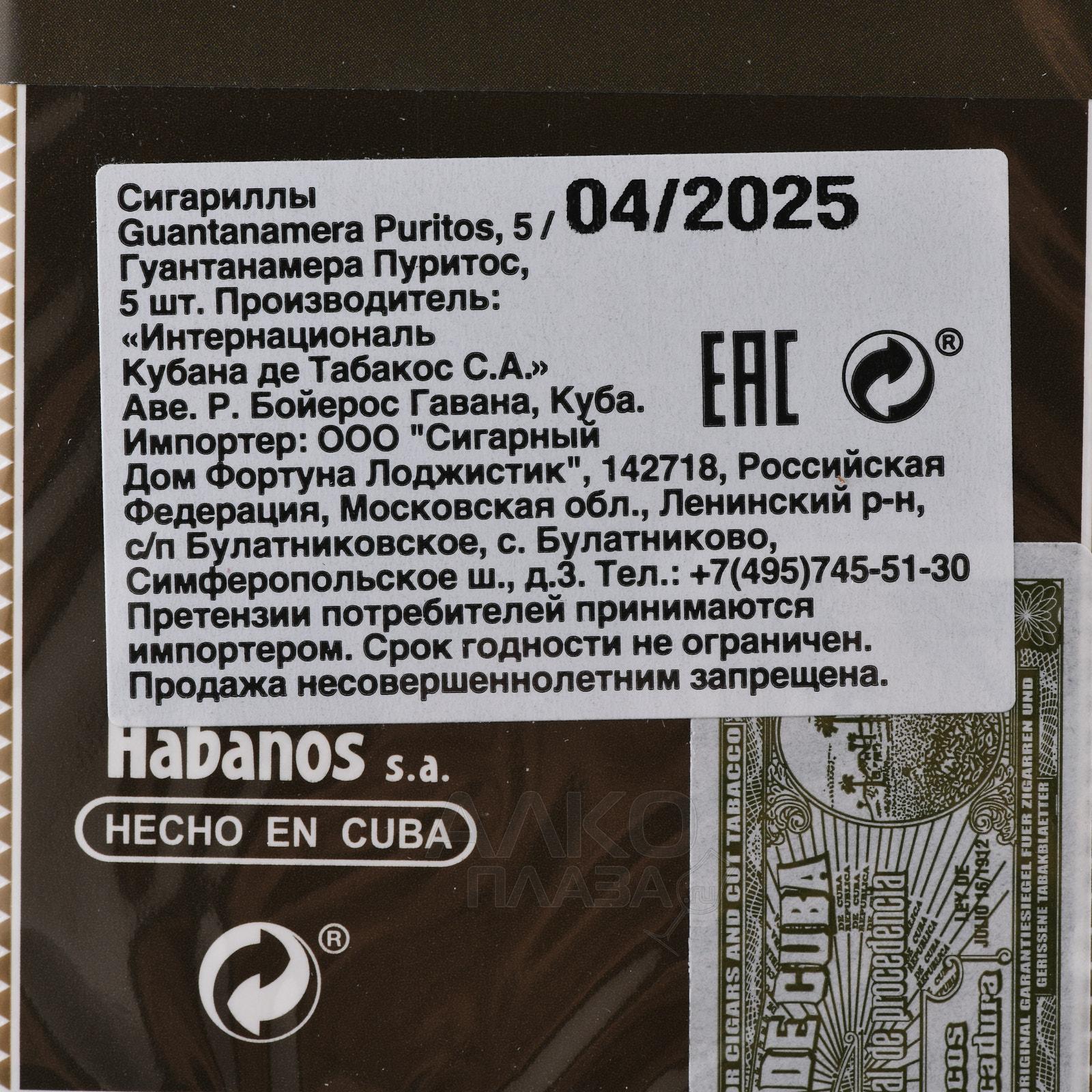 Guantanamera Puritos 5 - сигариллы Гуантанамера Пуритос 5
