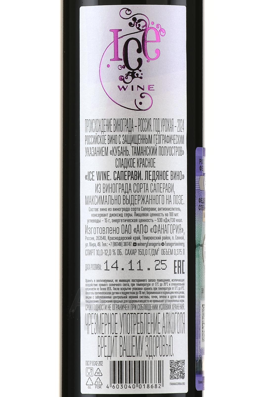 Красное сладкое вино Fanagoria Ice Wine Saperavi 0,375 л от винодельни Фанагория — уникальный образец российского виноделия, созданный в Краснодарском крае на Таманском полуострове. Виноград собирают поздней осенью при температуре до –7°C, благодаря чему ягоды слегка замерзают, а концентрация в них повышается до максимума. Это способствует получению вина с яркими вкусовыми характеристиками. Ферментация проходит медленно, при низких температурах, что позволяет сохранить природный сахар и ароматы. Вино Ice Saperavi неоднократно отмечено наградами на престижных российских конкурсах и получило высокие оценки экспертов за оригинальность и выразительный характер.