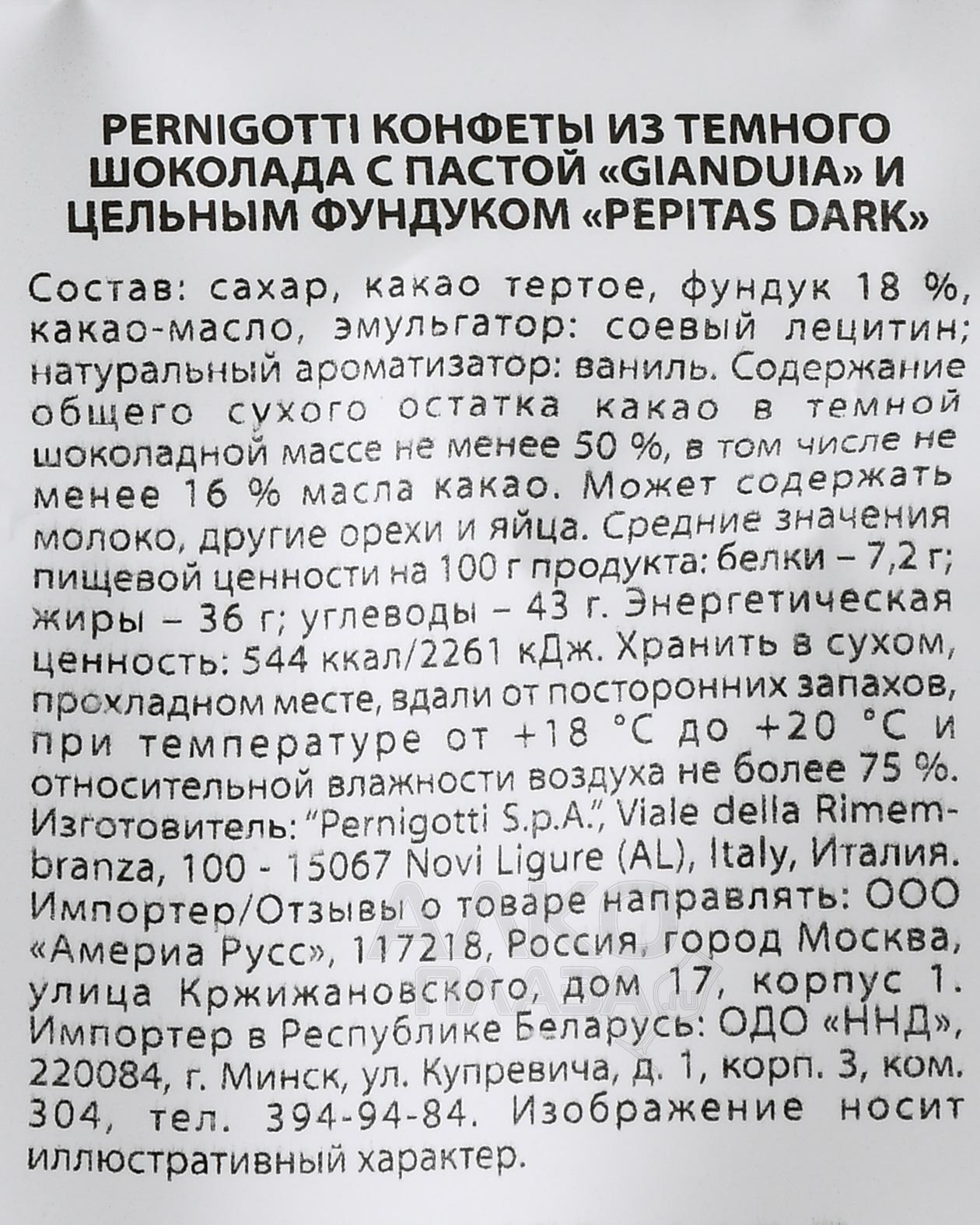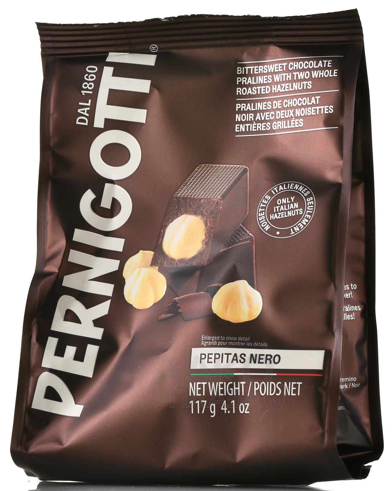 Конфеты Перниготти Пепитас Неро 117 гр темный шоколад с цельным фундуком