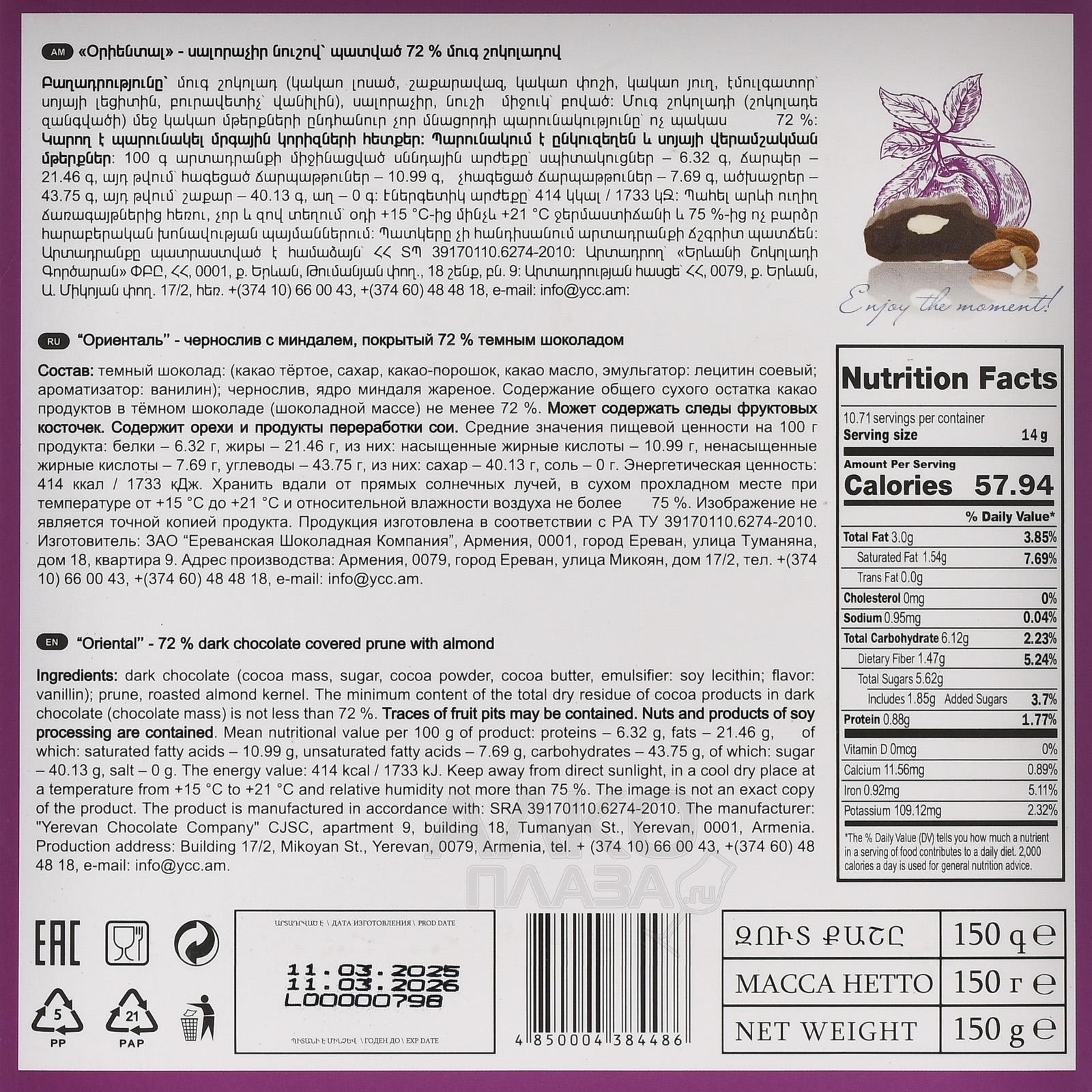 Конфеты шоколадные Марк Севоини Ориенталь 150 г