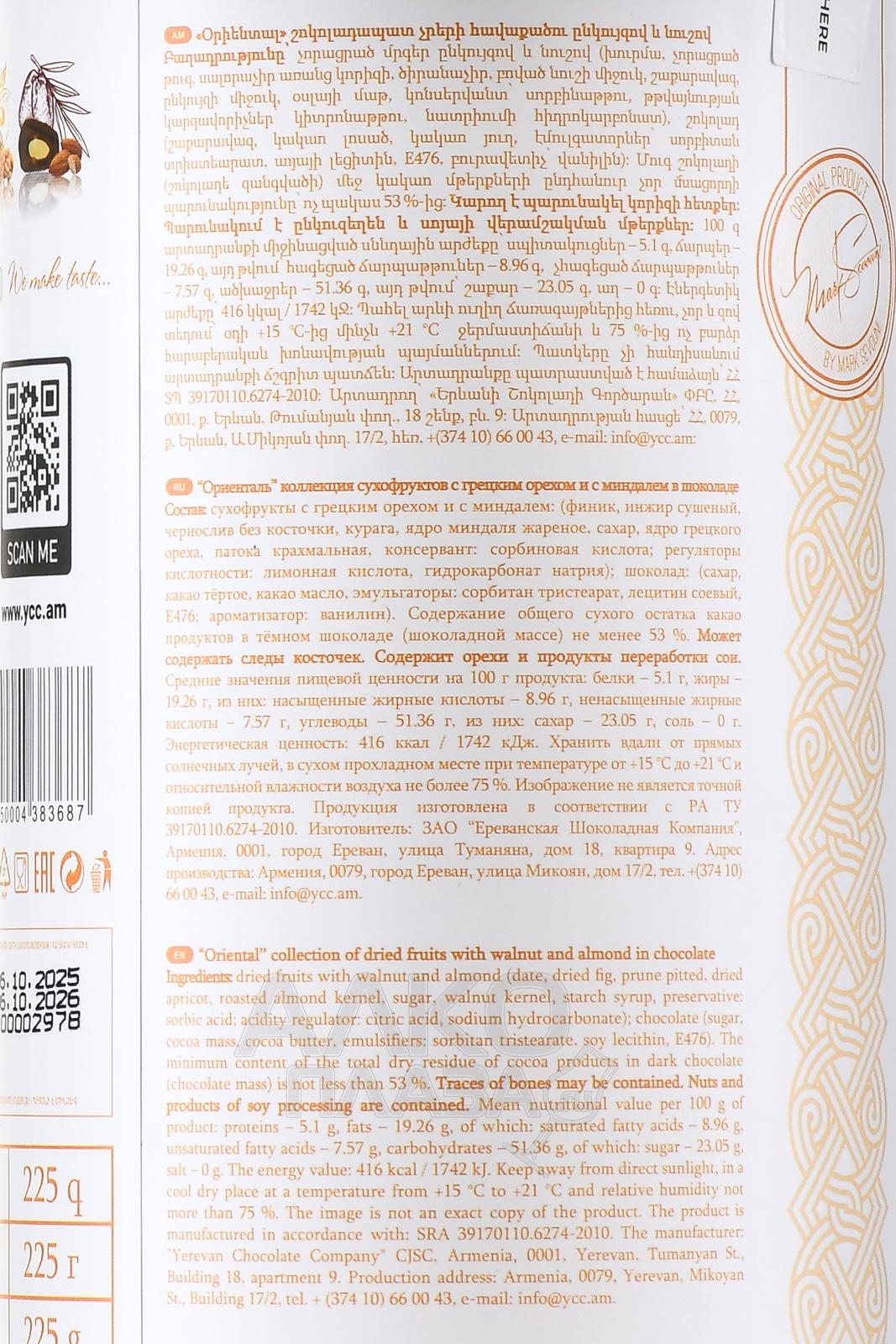 Конфеты шоколадные Марк Севоини Ориенталь 225 г туба