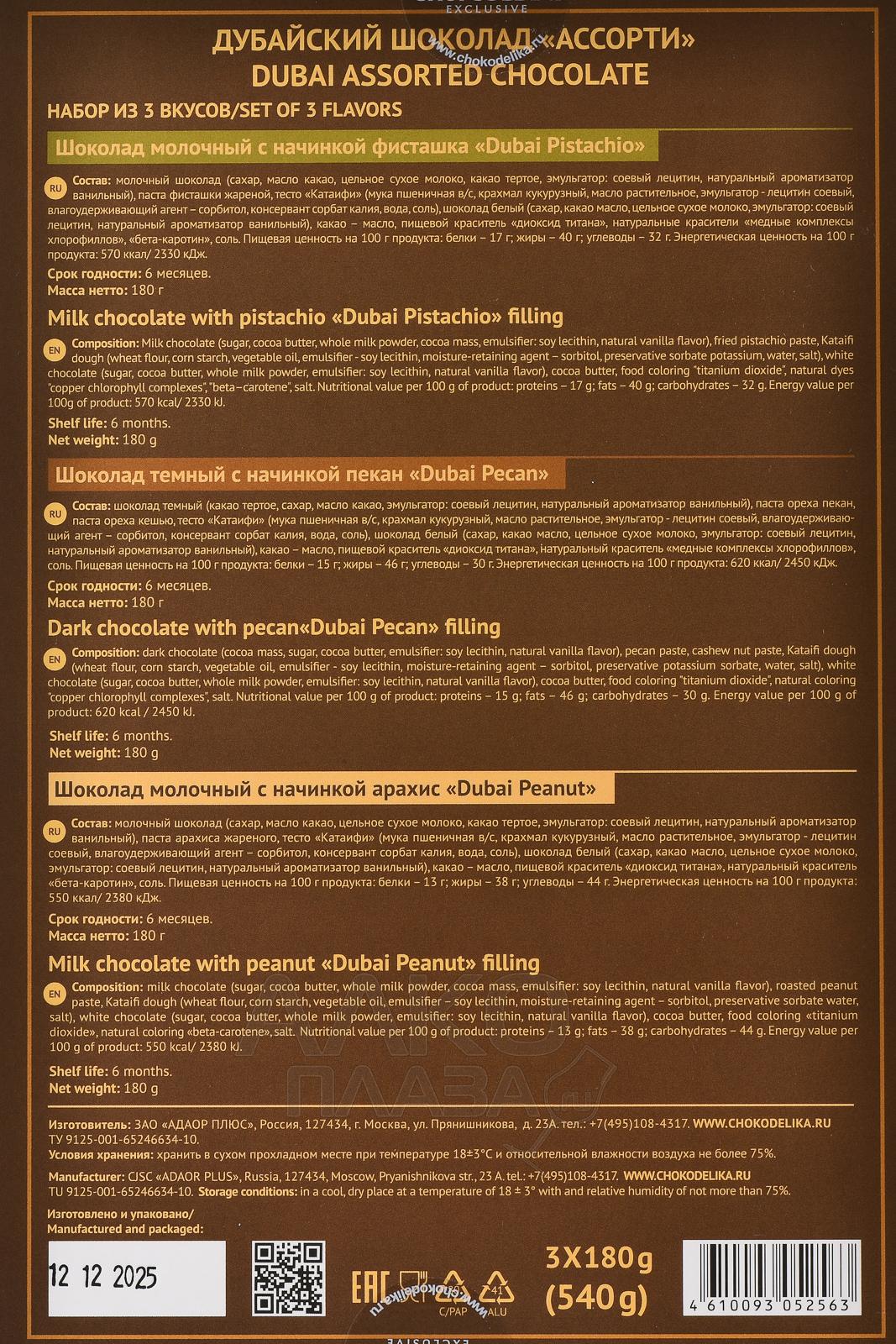 Шоколад Чокоделика с начинкой Дубай Ассорти 540 г
