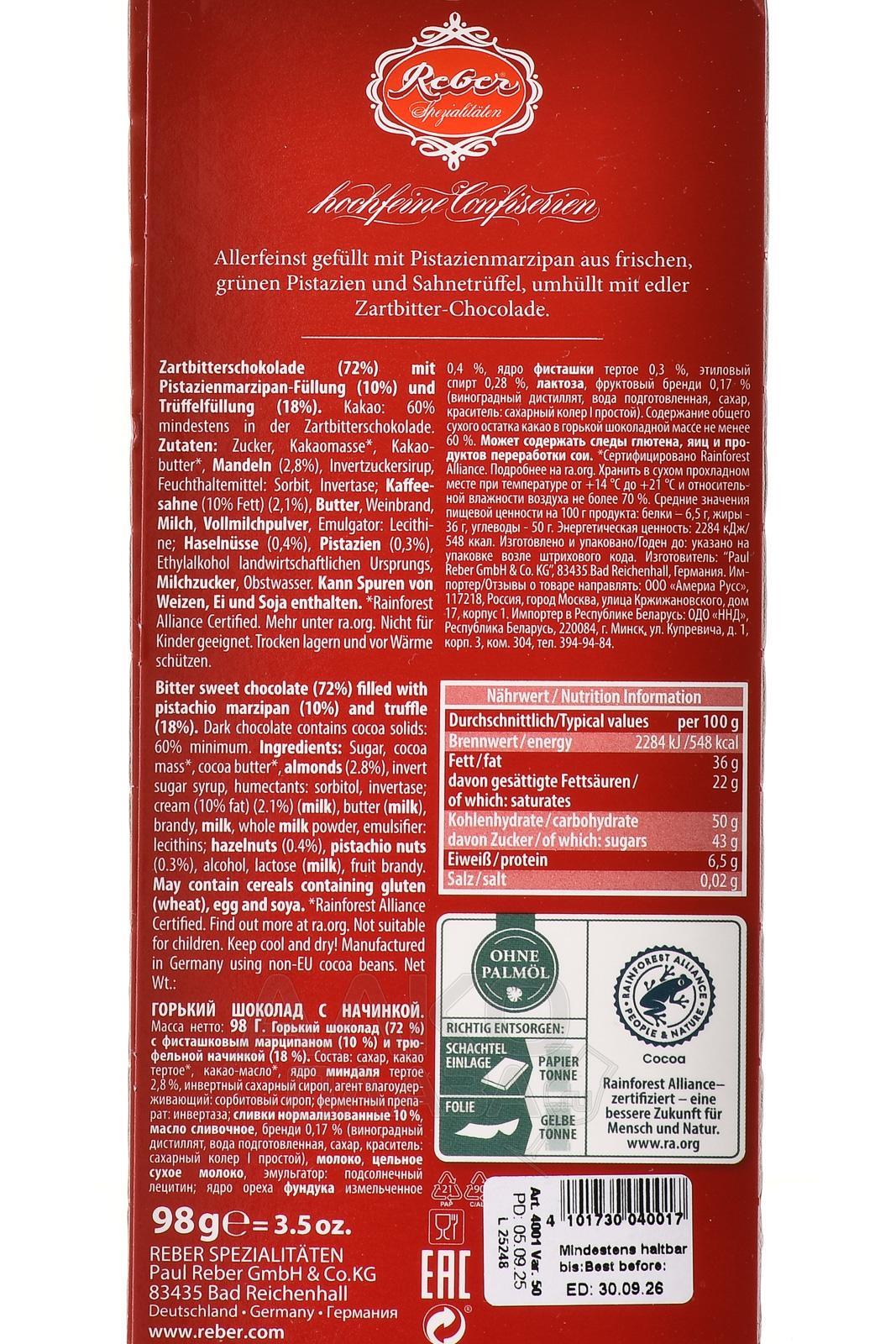 Шоколадная плитка Ребер Моцарт горький с начинкой 98 гр
