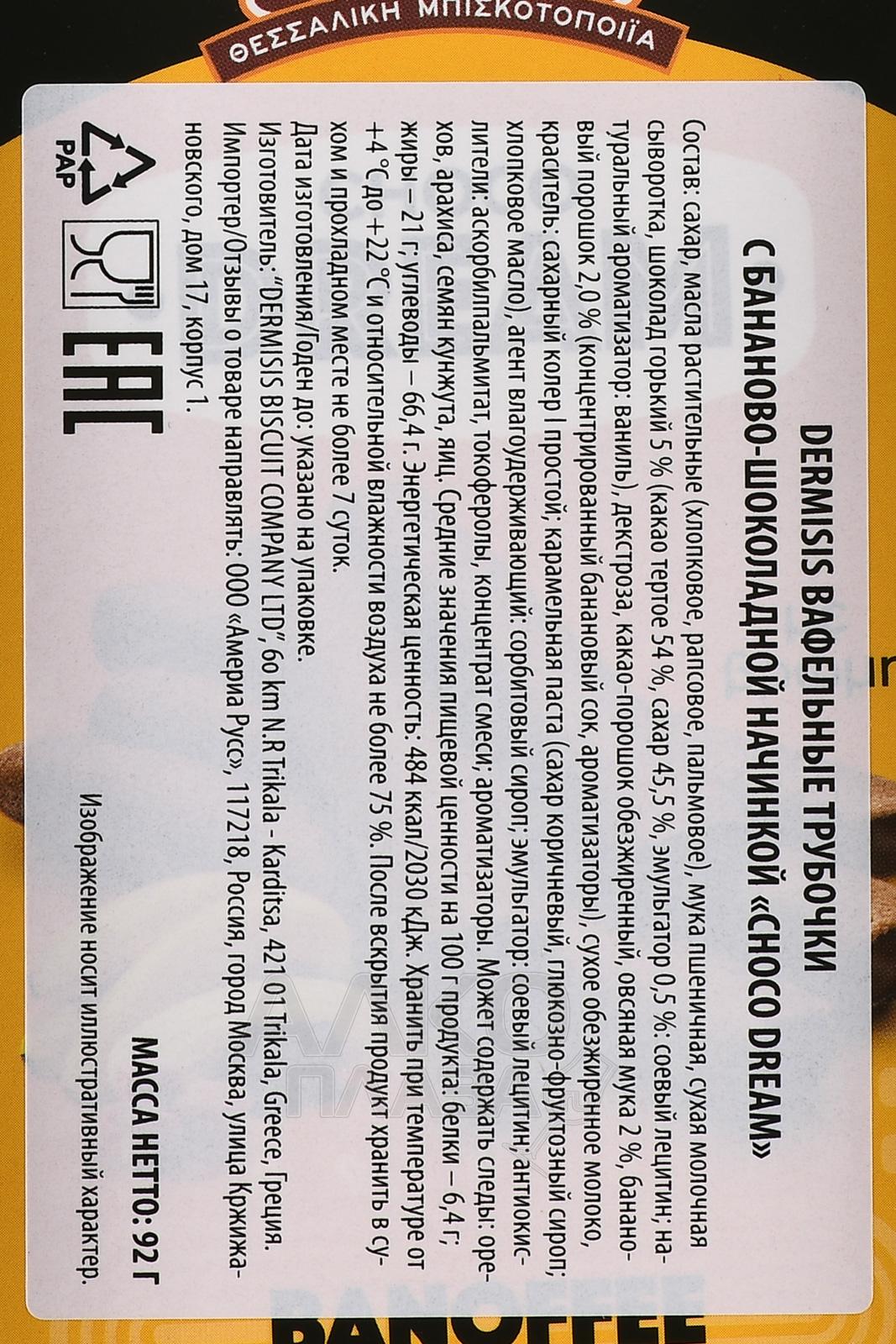 Трубочки вафельные Дермисис Чоко Дрим 92 гр с бананово-шоколадной начинкой