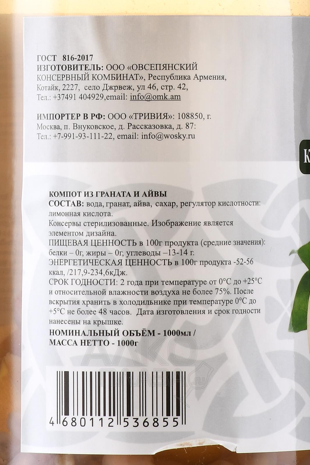 Компот Воски из Граната и Айвы 1 л